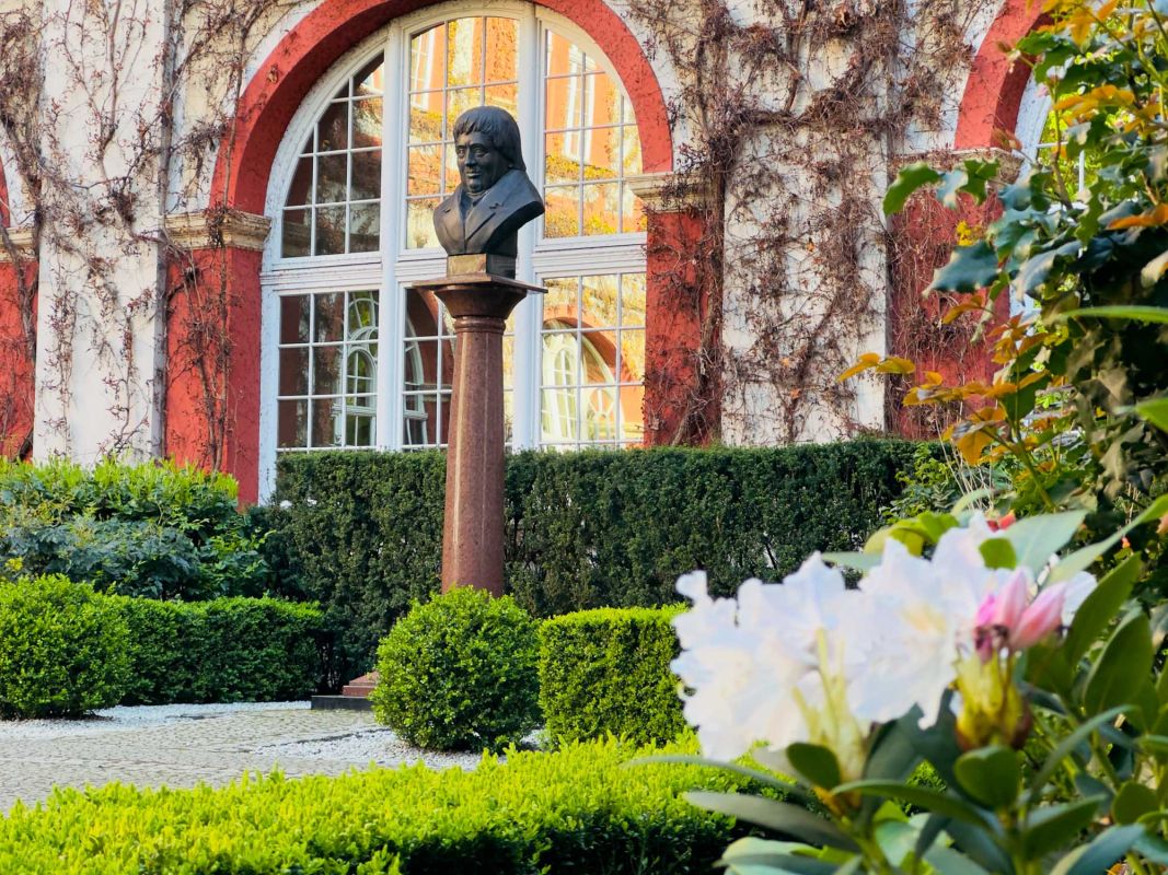 Внутренний двор и сад Оссолинского института (Ossolineum) в Вроцлаве создают прекрасную атмосферу покоя и красоты в сердце города. Это уникальное место является историческим и культурным памятником, где посетители могут насладиться природной красотой и отдохнуть от суеты городской жизни.
