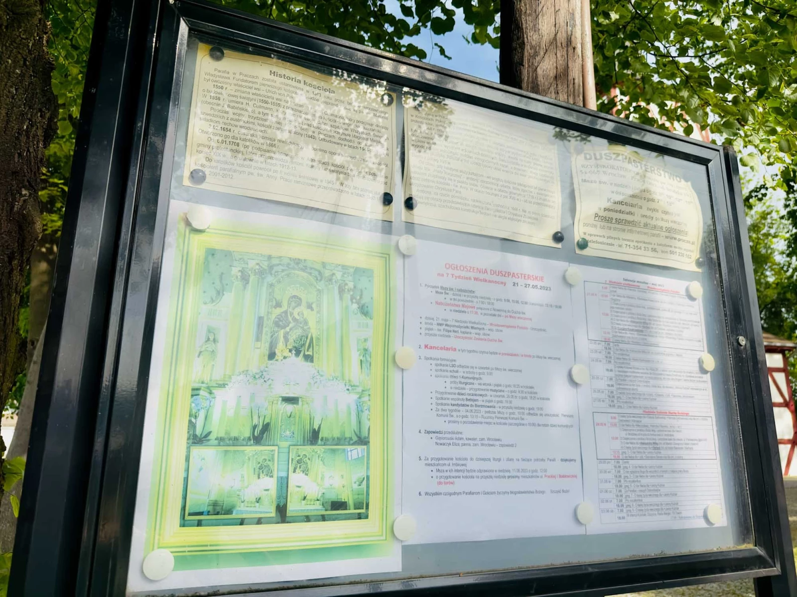 Парафия в Прачах была учреждена в 1383 году епископом Владиславом из Вроцлава. Основателем первой церкви в поселении (вероятно, святого Мартина) был тогдашний владелец деревни - Ульрих фон Пак.