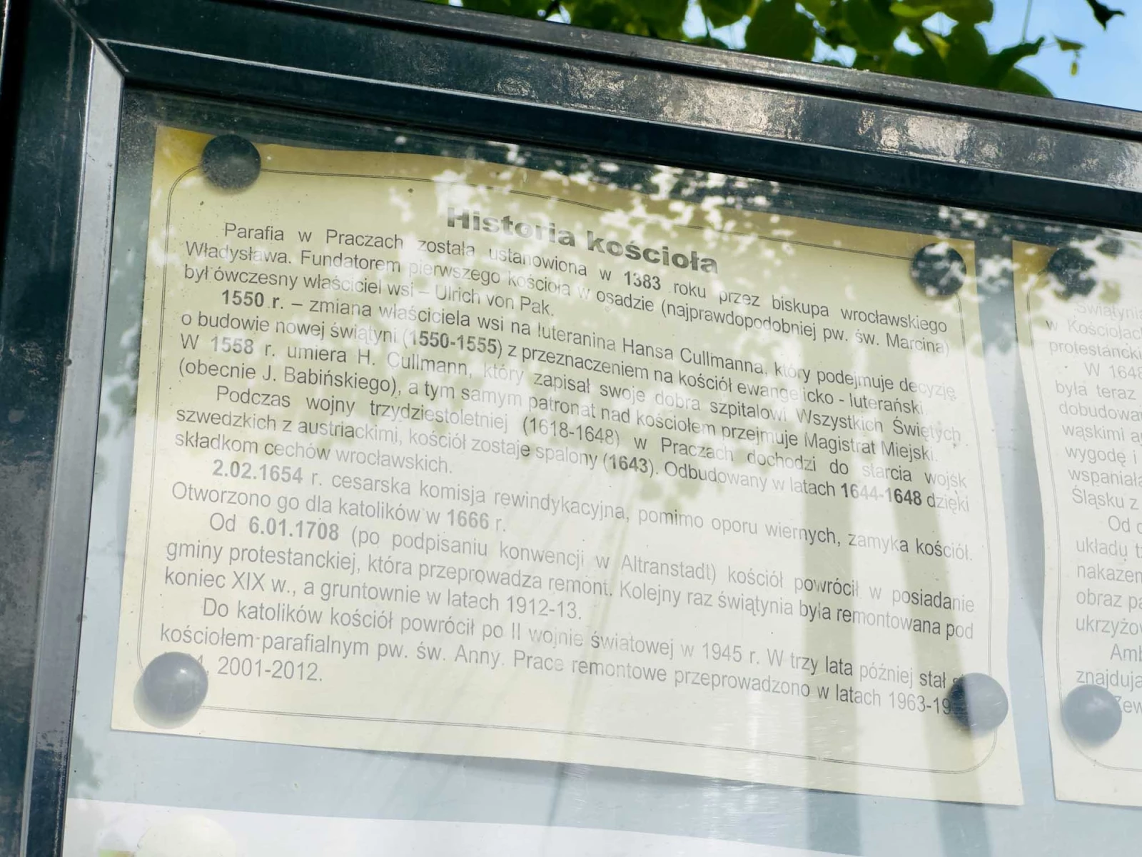 2 февраля 1654 года императорская ревизионная комиссия, несмотря на протесты верующих, закрывает храм. Он был открыт для католиков в 1666 году. С 6 января 1708 года (после подписания конвенции в Альтранштадте) церковь вернулась во владение протестантской общины, которая провела ремонтные работы. Храм был реставрирован в конце XIX века и полностью отреставрирован в 1912-1913 годах.