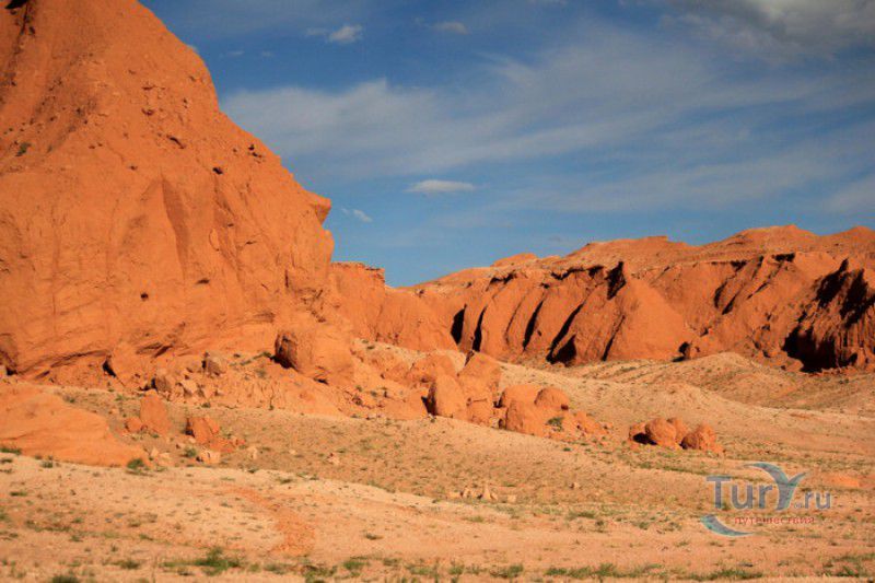 Скалы Баянзаг (Пылающие Скалы) расположены на юге Монголии, в провинции Умнеговь, в пустыне Гоби, в 90 километрах к северо-западу от города Даланзадгад. В переводе с монгольского Баянзаг означает "богатые саксаулом", так местные жители назвали эти скалы из-за обильно растущего на их склонах колючего кустарника (любимого лакомства верблюдов). Пылающими их назвал американский палеонтолог Рой Чепмен Эндрюс из-за красно-оранжевого цвета песчаника, из которого эти скалы сложены. В лучах восходящего солнца и на закате скалы словно пылают, охваченные огнём. Но не только красивые виды привлекают сюда туристов - Баянзаг является одним из самых знаменитых палеонтологических захоронений в мире. В 1920-х годах экспедиция Американского музея естественной истории, возглавляемая Эндрюсом, обнаружила здесь гнездо с окаменелыми яйцами динозавра Теропода овираптора (внутри одного яйца учёные обнаружили остатки зародыша), а также окаменелые останки хищного динозавра Велоцираптора и плацентарных млекопитающих, населявших эти места 60-80 миллионов лет назад. Эти находки произвели сенсацию в мировом научном сообществе. Экспедиции следовали одна за другой, палеонтологами были обнаружены кости и черепа динозавров, некоторые виды которых до этого времени науке были неизвестны. Туристам, посещающим Баянзаг, и сейчас местные торговцы предлагают "совсем недорого" яйца, кости динозавров и окаменелости доисторических животных. Однако, следует помнить, что ещё в середине XX века в Баянзаге палеонтологами были извлечены из земли все ценные находки, а, кроме того, незаконная торговля и вывоз окаменелостей динозавров за пределы Монголии строго запрещены и могут грозить, в лучшем случае, огромными штрафами. Но красота этих мест никуда не исчезла - вот как описывал Баянзаг писатель-фантаст и палеонтолог Иван Ефремов, побывший здесь с экспедицией в конце 1940-х годов: "И все же ни с чем не сравнимую, совершенно фантастическую картину представляла котловина вечером, минут за десять до захода солнца. Круглые обрывы изъеденных ветром древних песчанистых отложений полыхали ярко-красным пламенем. Казалось, вся котловина превратилась в море огня. Этот неожиданный эффект объяснялся просто: лучи заходящего солнца освещали древние красноцветные песчаники стен котловины и останцы, создавая совершенно реальное представление "пылающих скал"".