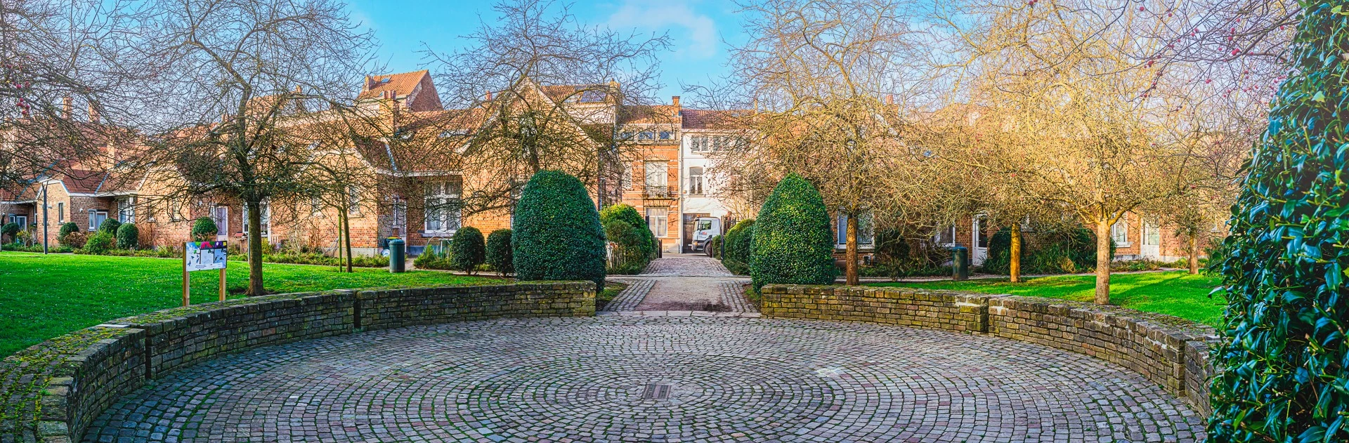 Неброский и занимающий густонаселенную городскую территорию, этот город-сад имел особую цель, которая отличалась от других городов-садов Брюсселя. 32 дома, расположенные вокруг получастного парка, были построены между 1909 и 1910 годами Брюссельскими хосписами; в то время они предназначались для пожилых людей, которые, хотя и подчинялись определенным правилам, получали определенный набор льгот — пособие, бесплатную медицинскую и фармацевтическую помощь и т. д.