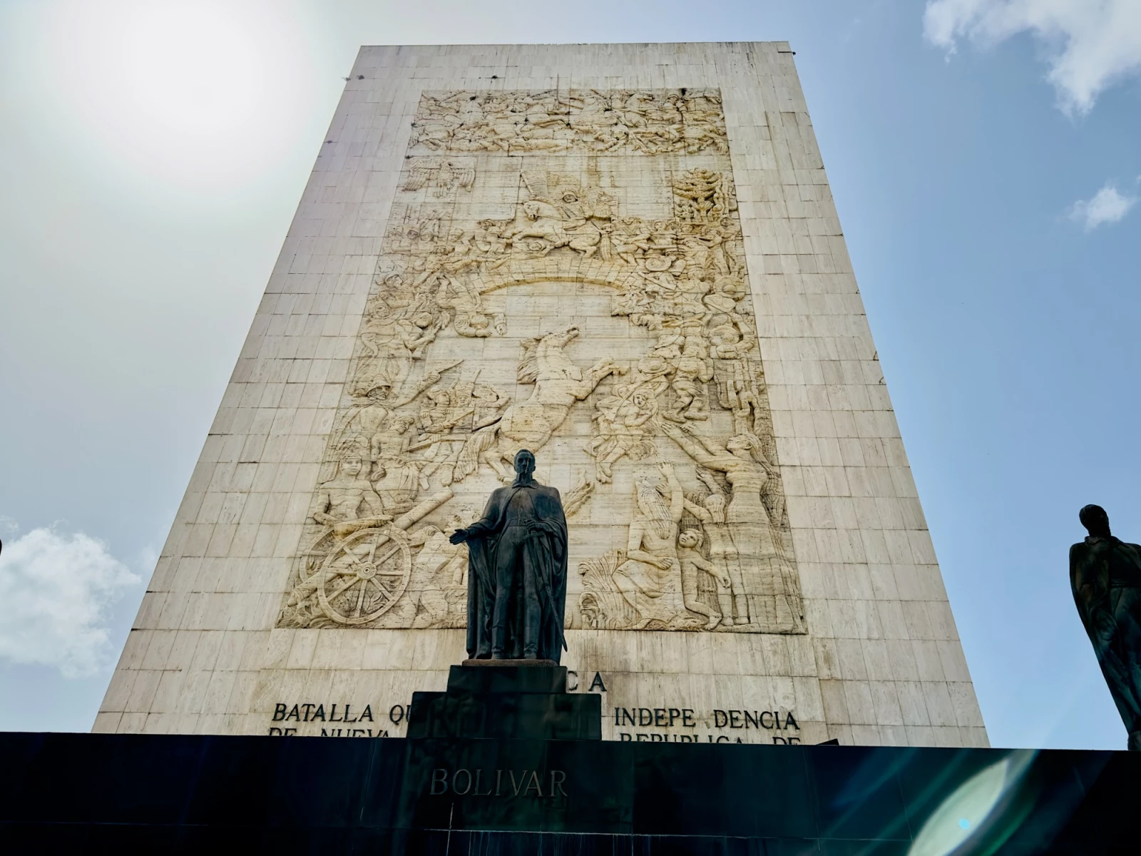 На монолитах можно детализировать имена венесуэльских героев и рельефное изображение сражений Аякучо, Бояка, Пичинча, закрепивших независимость боливарианских стран.