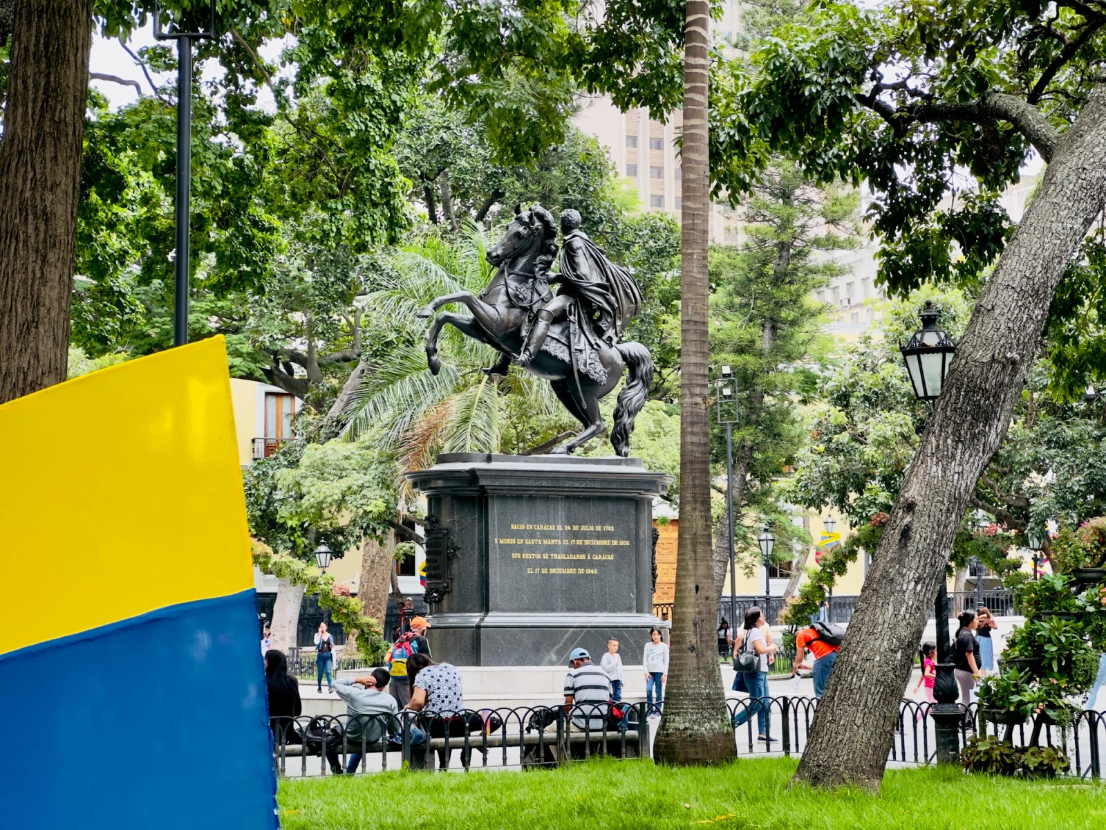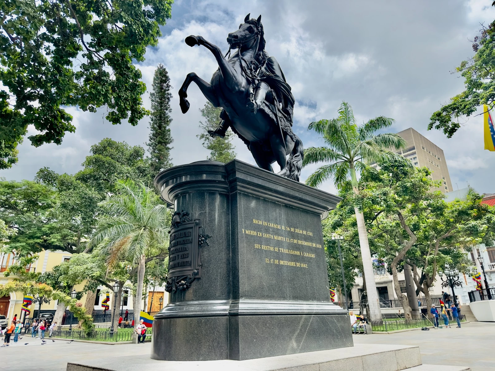 Памятник Симону Боливару: Площадь украшена памятником Симону Боливару, который стоит в центре площади. Этот памятник - один из самых известных символов Венесуэлы и олицетворение борьбы за независимость страны.