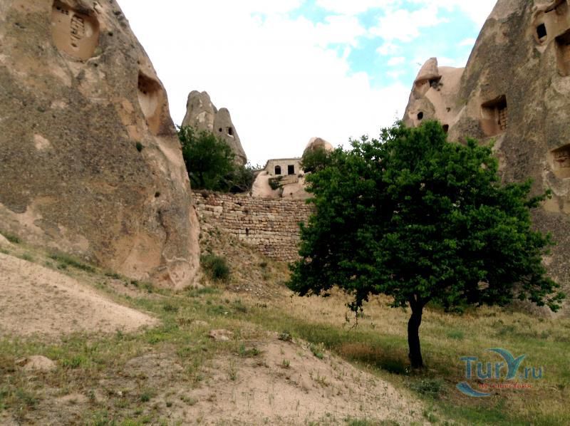 Крепость Учхисар в переводе с турецкого означает «три крепости». Эта шестидесятиметровая скала, возвышающаяся на 1400 метров над уровнем моря, прекрасно просматривается с любой точки окрестностей одноименного местечка Учхисар. История умалчивает о том, кому пришло в голову приспособить эту скалу под крепость, однако известно, что в роли крепости она служила еще в эпоху хеттов в Бронзовом веке, не говоря уже о Риме и Византии.