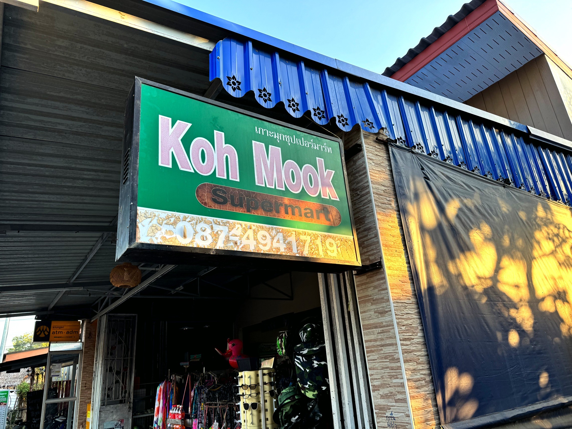 Koh Mook Supermart - один из немногих магазинов на острове Ко-Мук. Расположен Koh Mook Supermart практически в конце центральной улицы, ведущей от главного пирса вглубь острова. Здесь можно купить одежду, предметы первой необходимости, пляжные коврики, надувные круги, продуты питания, прохладительные напитки, свежие фрукты и многие другие мелочи.