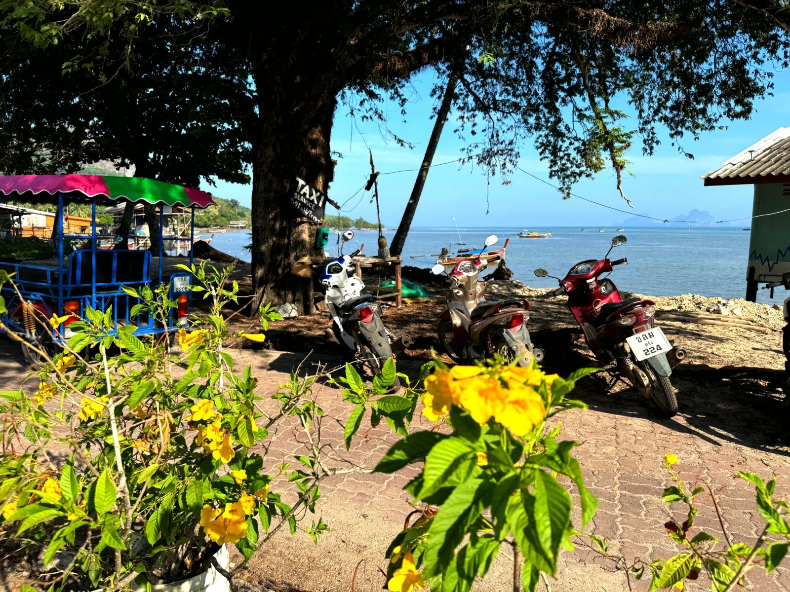Пирс острова Ко-Мук окружен красивейшим морским пейзажем с изумрудной зеленью гор, с прозрачной водой и песчаным дном. Вокруг пирса часто можно видеть огромные косяки рыб, плавно кружащих в своем ритме, или небольшие стайки рыб, подплывающих в ожидании еды так близко что их можно свободно разглядывать.