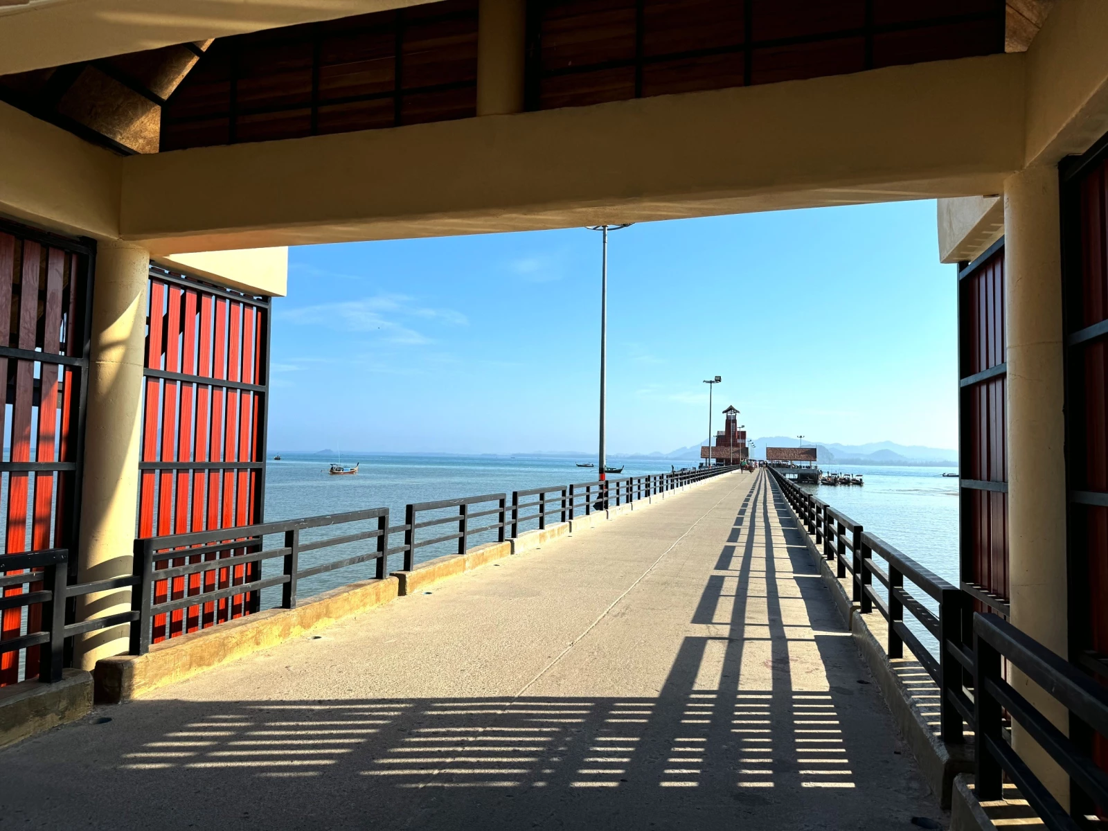 Пирс острова Ко-Мук Koh Mook Pier длиной тонкой бетонной полоской вытянулся в море с восточной стороны острова. Этот пирс является центром притяжения, самым оживленным местом, самой важной точкой входа и выхода прибывающих на остров туристов. Для местных жителей и предпринимателей - это место прибытия грузов, товаров и еды с материка.
