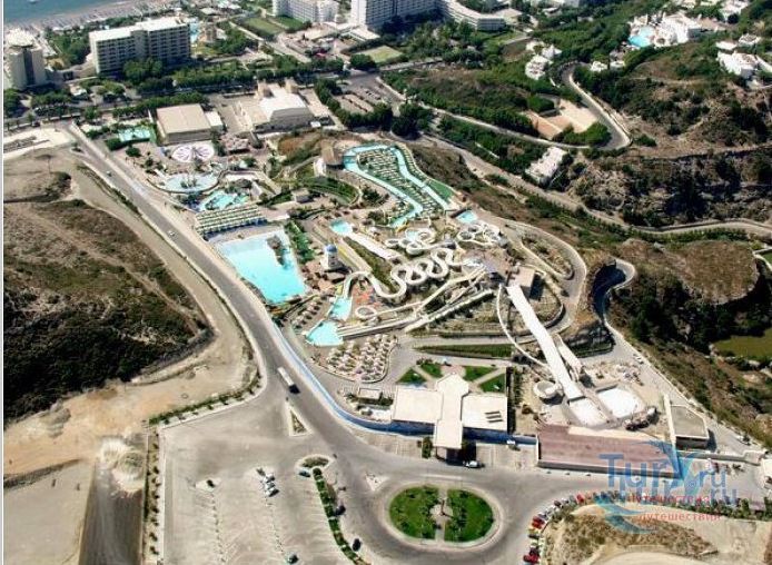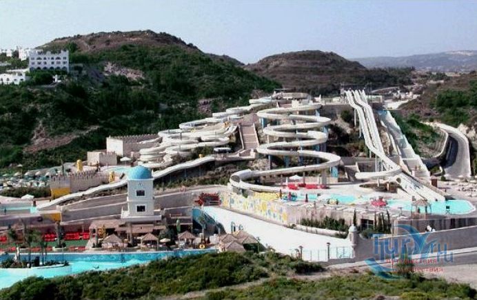 Уникальный Аквапарк, построенный амфитеатром и занимающий территорию площадью 100 000 квадратных метров, расположен на восточном побережье острова Родос, напротив отеля Esperos Palace, в 12 км от центра города Родос и в 5 км от центра города Филарики. Территория аквапарка разделена на 3 сектора. В 1-ом секторе - большое разнообразие водных горок: экстремальные, открытые и закрытые, во 2-ом секторе - огромный бассейн с искусственной волной, 3-й сектор отдан детям - здесь и водные лабиринты, и бассейн с пиратским кораблем и водные игры.