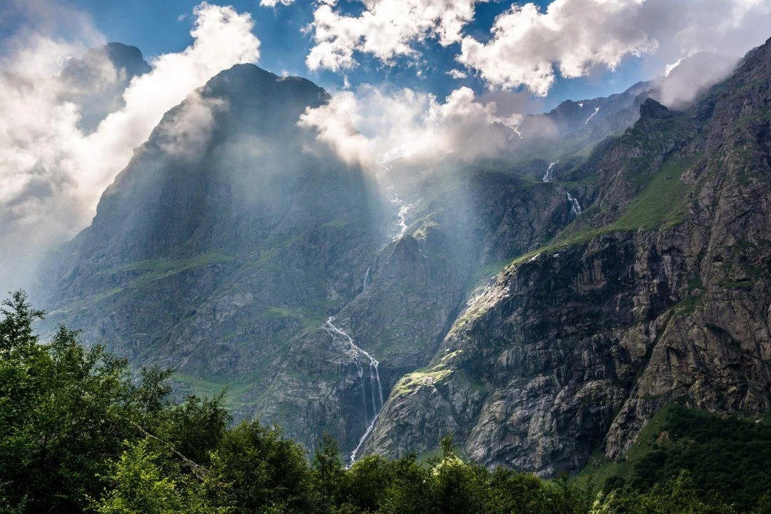 Мидаграбинские водопады — это группа впечатляющих водопадов, расположенная в Северной Осетии, в живописном Мидаграбинском ущелье. Этот природный комплекс считается одним из самых высоких в Европе, с главным водопадом, высота которого достигает около 750 метров. Вода устремляется вниз по отвесным скалам, создавая величественное зрелище.
