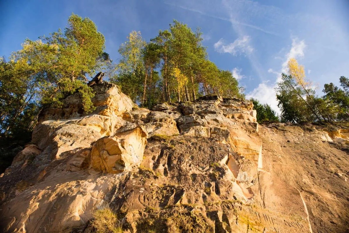 Пройдите по пешеходным тропам в скалах Эрглу, чтобы узнать больше о реке Гауя, древних легендах об этой прекрасной реке и интересных растениях и видах птиц, которые можно встретить на ее берегах.