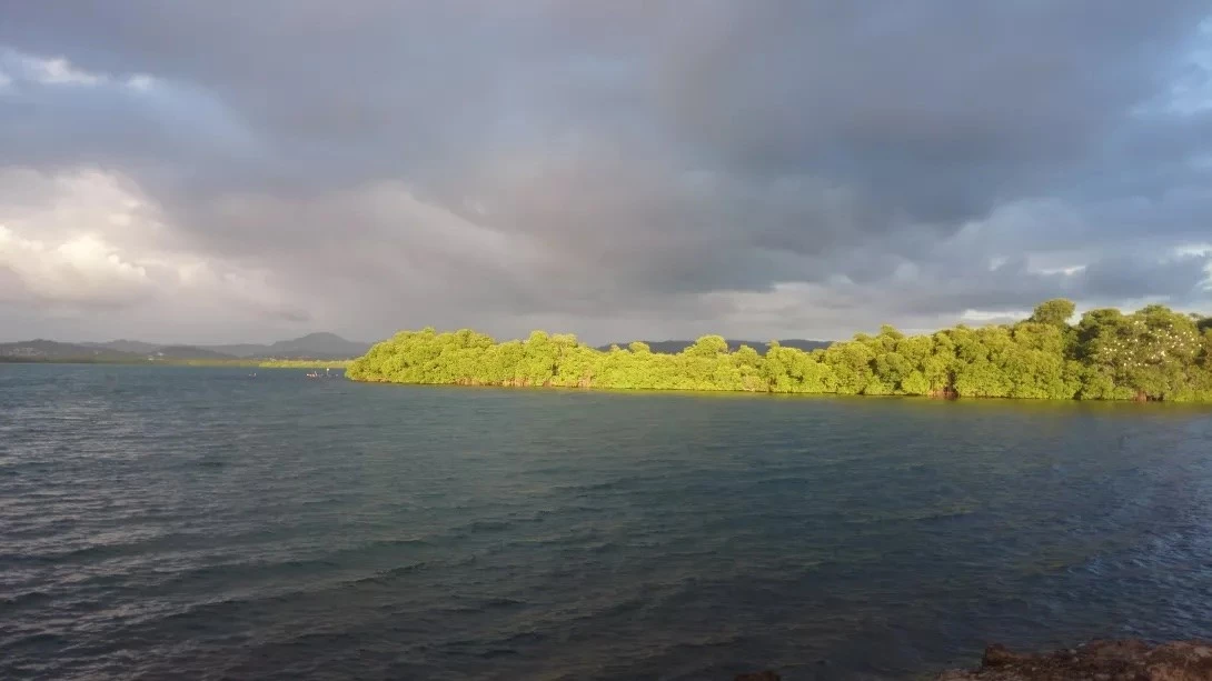 С пешеходной дорожки открывается приятный вид на Habitation Vatable, Грос-Иле и залив Фор-де-Франс.