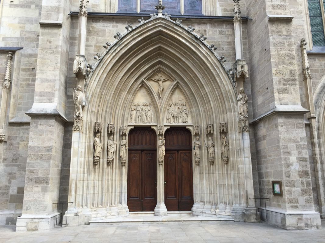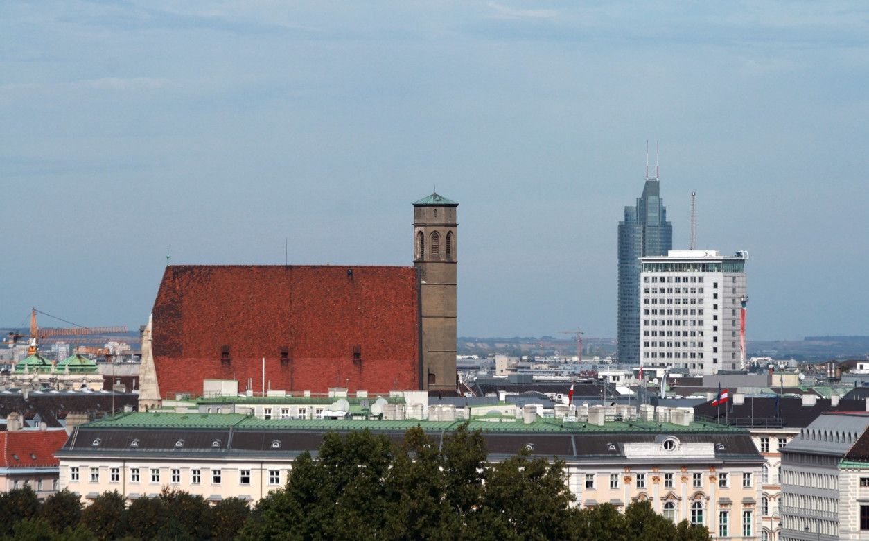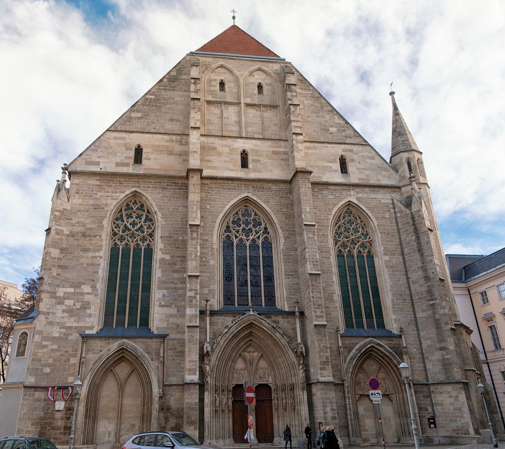 Церковь миноритов была заложена в 1275 году, став одной из первых церквей в готическом стиле в Вене. Первые изменения в архитектуре здания произошли довольно быстро: в 1328 году была построена часовня в честь Людовика IX Святого. Часовня имела отдельный вход и не соединялась с церковью. Однако, объединение произошло уже в 1340 году, создав трехнефное единое помещение.