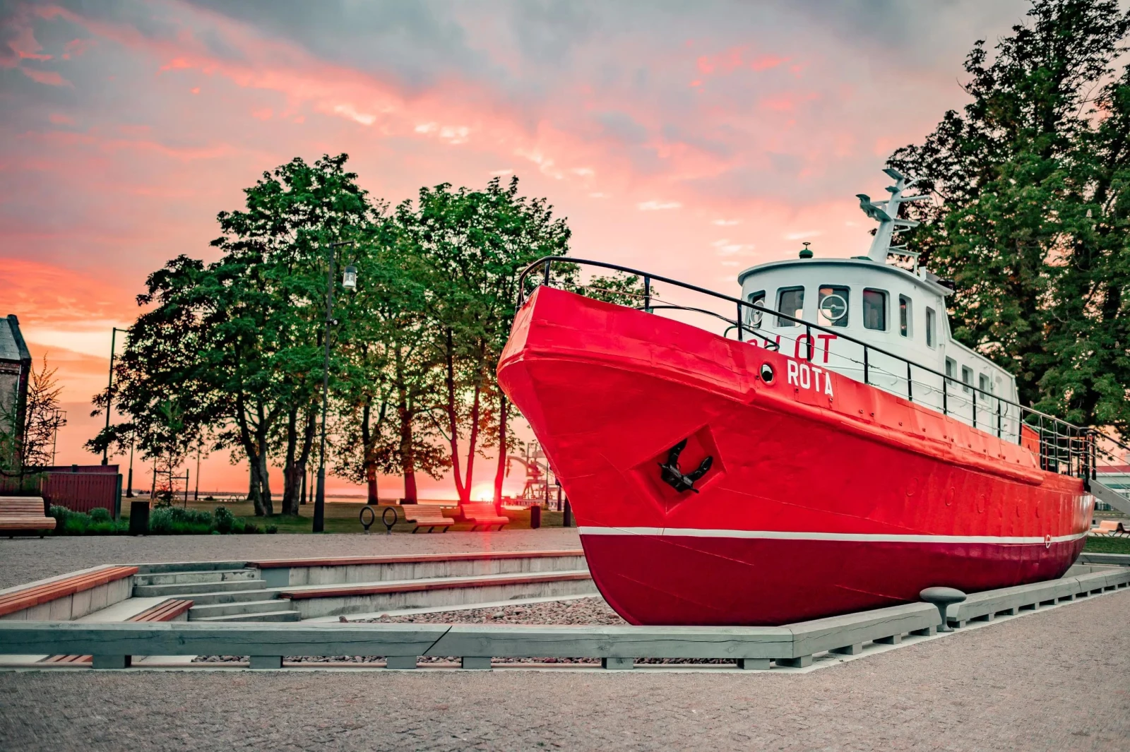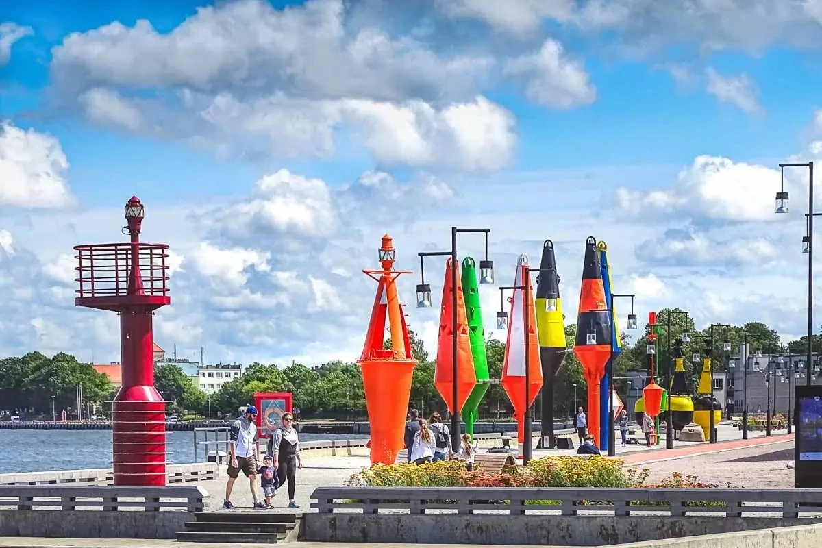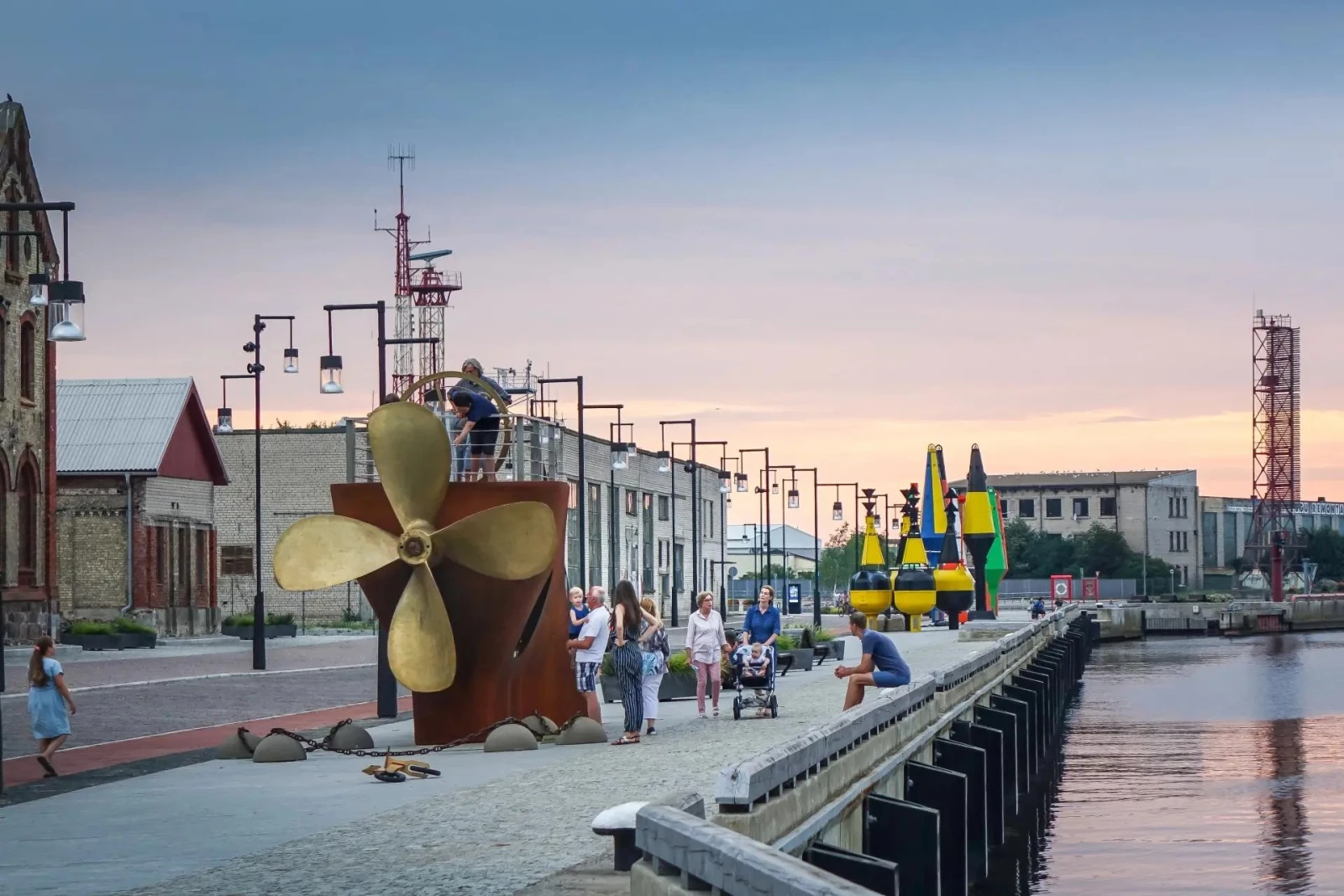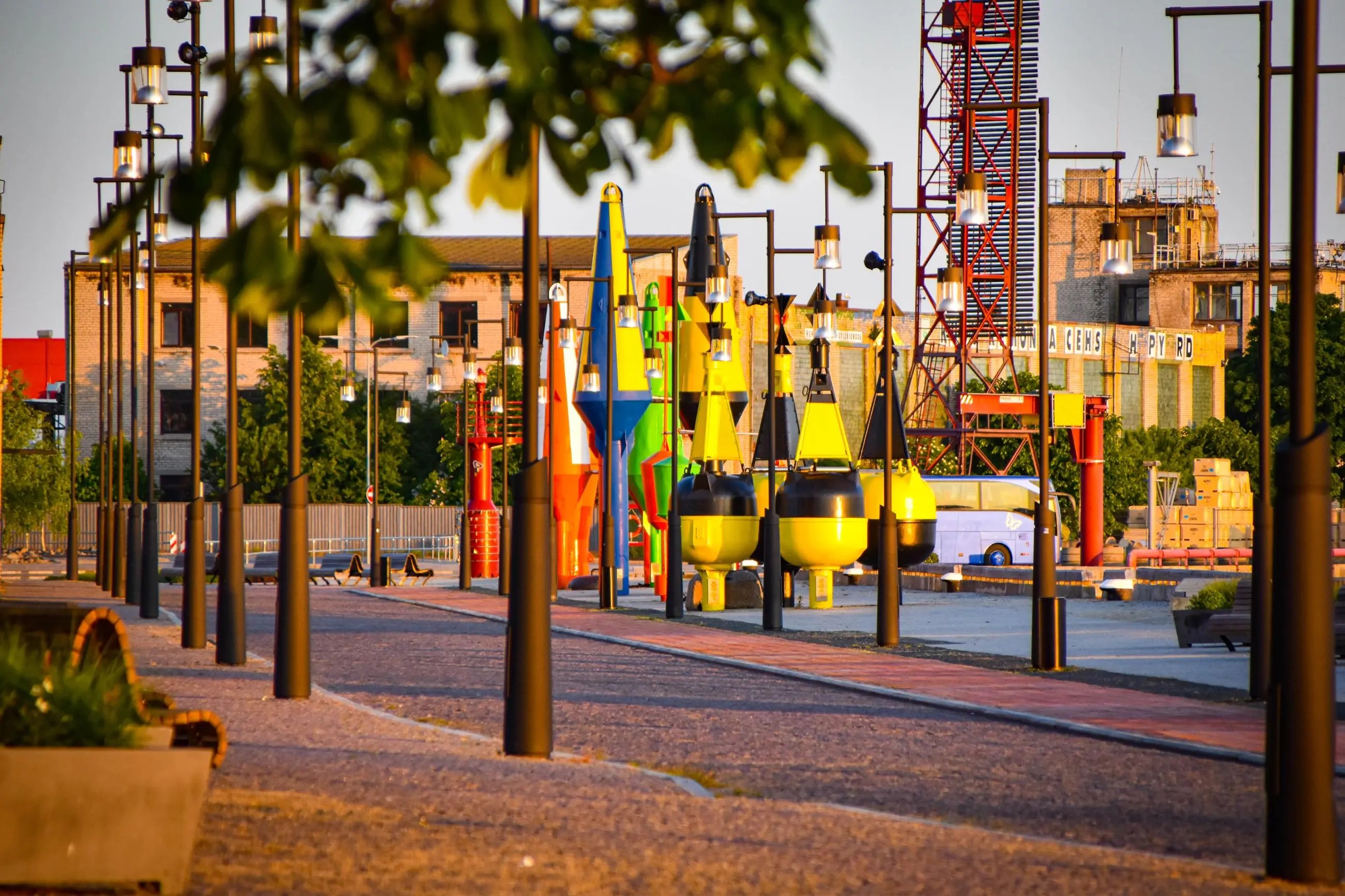 Новый променад улицы Остас также привлекателен благодаря специально спроектированным и подобранным фонарям освещения и тротуарам из различных видов привлекательной брусчатки, включая велосипедную дорожку из клинкерной брусчатки.