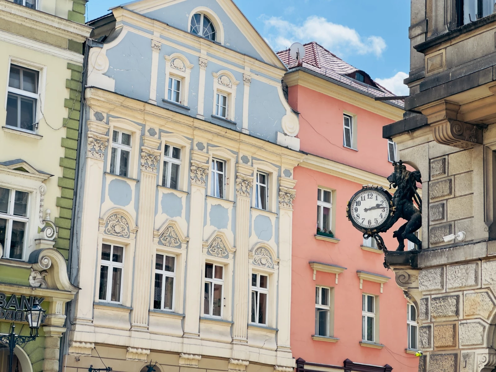 Рынок в Клодзко (Польша) – это очаровательная историческая площадь, сердце города, окруженная зданиями с уникальной архитектурой, отражающей различные эпохи и стили. Здесь можно увидеть дома с элементами готики, ренессанса и барокко, многие из которых украшены яркими фасадами и резными деталями.