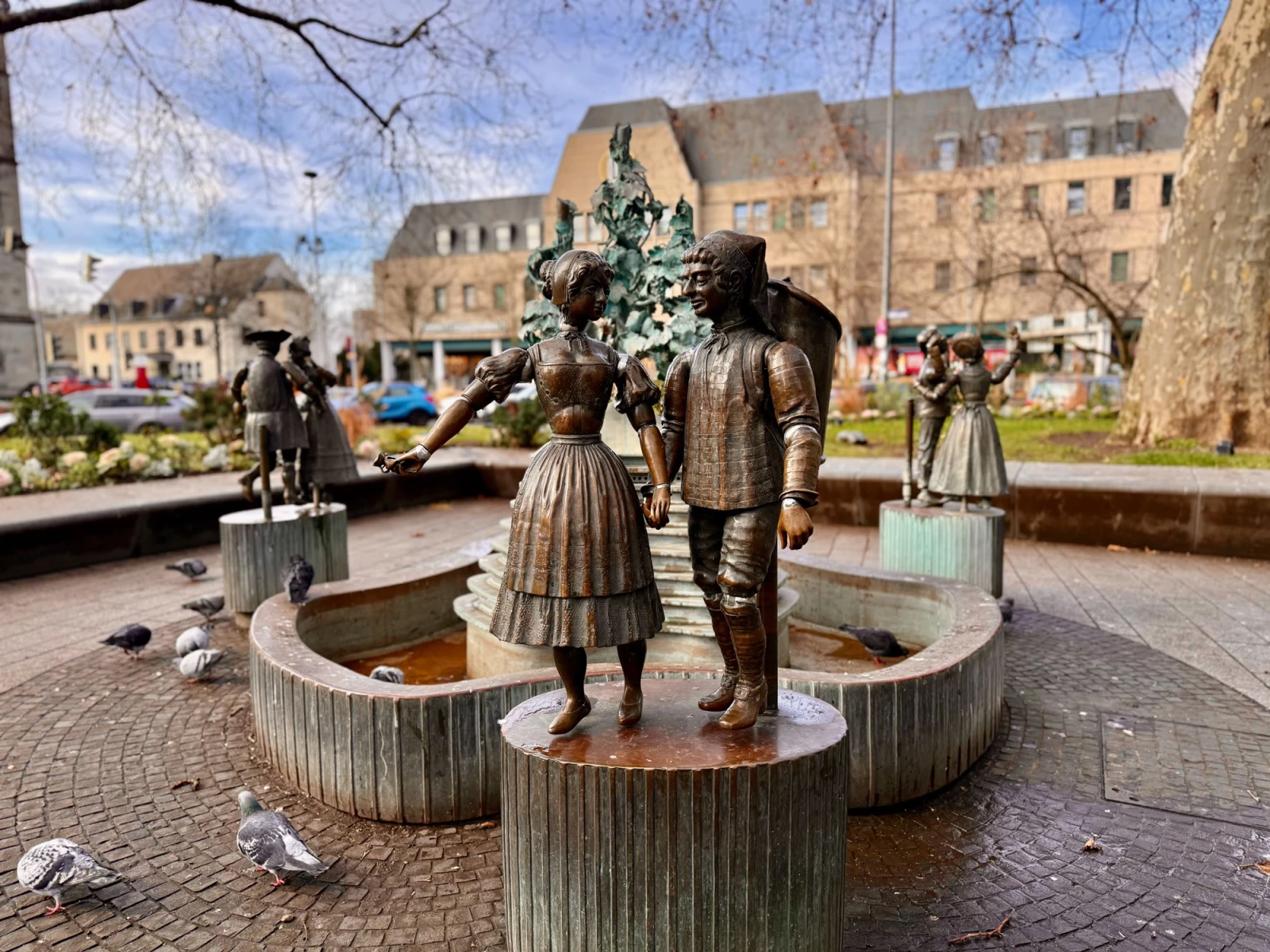 Штирнберг известен своим умением передавать повседневные моменты и человечность в своих скульптурах, а Weinbergsbrunnen не исключение. В осеннее время фонтан становится особенно привлекательным, когда вокруг него кружатся золотые листья, создавая атмосферу магии и праздника.