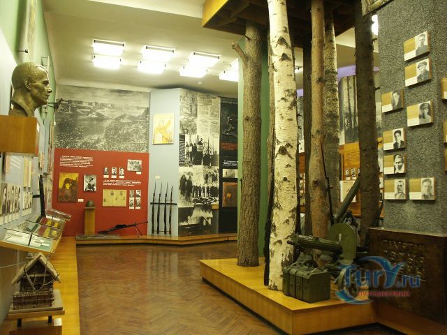 Открытие музея состоялось в 1969 году и было приурочено к празднованию 25-летия освобождения Беларуси от немецко-фашистских захватчиков. Эта витебская достопримечательность стала важным объектом культуры города - теперь каждый может познакомиться с жизнью и деятельностью Миная Филипповича Шмырева – легендарного Батьки Миная – командира первого на Витебщине партизанского отряда, Героя Советского Союза и Почетного гражданина города Витебска. Экспозиция музея состоит из 4 экспозиционных залов, общей площадью 216 м2. Фонд музея насчитывает более 7 тысяч экспонатов, в экспозиции представлено более 1,5 тысяч. Экспозиция музея рассказывает о жизни и деятельности легендарного комбрига партизанского движения в годы Великой Отечественной войны 1941-1945 годов М.Ф.Шмырёва (Батьки Миная). Документы, фотографии, предметные экспонаты рассказывают о создании первого на территории Витебской области партизанского отряда «Батьки Миная», об организации 1-й Белорусской, 1-ой Витебской и имени Краснознамённого Ленинского комсомола партизанских бригадах, которые вели борьбу в Витебско-Суражской партизанской зоне. В экспозиционном поясе представлены карты-схемы разгрома вражеских гарнизонов, электрофицированная карта связей Первой Белоруской партизанской бригады с основными районами борьбы народных мстителей, схема размещения партизанских аэродромов, листовки, партизанские знамёна, комплекс медицинских инструментов партизанского госпиталя. Также документы и материалы о 825 батальоне Волжско-татарского легиона, 105-м гвардейском авиационном полке. Большим выставочным комплексом представлено оружие. Экспонируются бюсты М.Ф.Шмырева, Героя Советского Союза М.Ф.Сильницкого, командира отряда Г.С.Курмелёва, личные вещи, документы, награды, фотографии М.Ф.Шмырева и партизан. Подвиги легендарного партизанского комбрига нашли широкое отражение в произведениях литературы и искусства. В залах музея экспонируются книга В.Саблина «Батька Минай», «Баллада о четырех заложниках» А.Кулешова, портрет «М.Ф.Шмырев — легендарный комбриг», выполненный художником П.Явичем и работа П.Савицкого «Батька Минай». Демонстрируется документальный фильм «Батька Минай» и художественная кинолента «Батька». Рядом со зданием музея - мемориальный парк, который является своеобразным продолжением экспозиции, скульптурный бюст Миная Шмырева работы народного художника СССР З.Азгура, дубовая аллея, посаженная бывшими партизанами, макет «Рельсовая война», артиллерийские пушки и миномет.