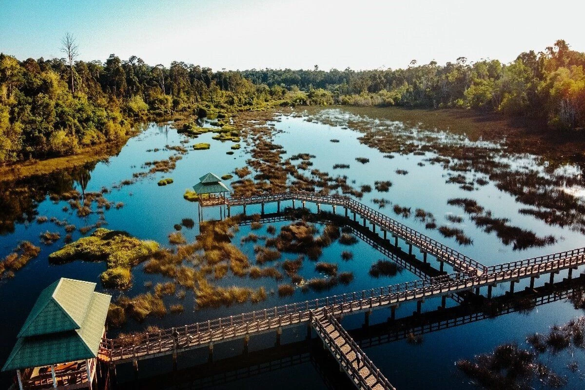Парк Наследия Тасек Меримбун – это живописное природное убежище в самом сердце Брунея, известное своим тёмным, почти чернильным озером, окружённым густыми тропическими лесами. Это крупнейшее озеро в стране и важный заповедник, охраняемый в рамках программы ЮНЕСКО «Человек и биосфера». Тасек Меримбун – не просто природный парк, а настоящая жемчужина Брунея, где гармонично сочетаются дикая природа, культурное наследие и научные исследования.
