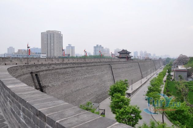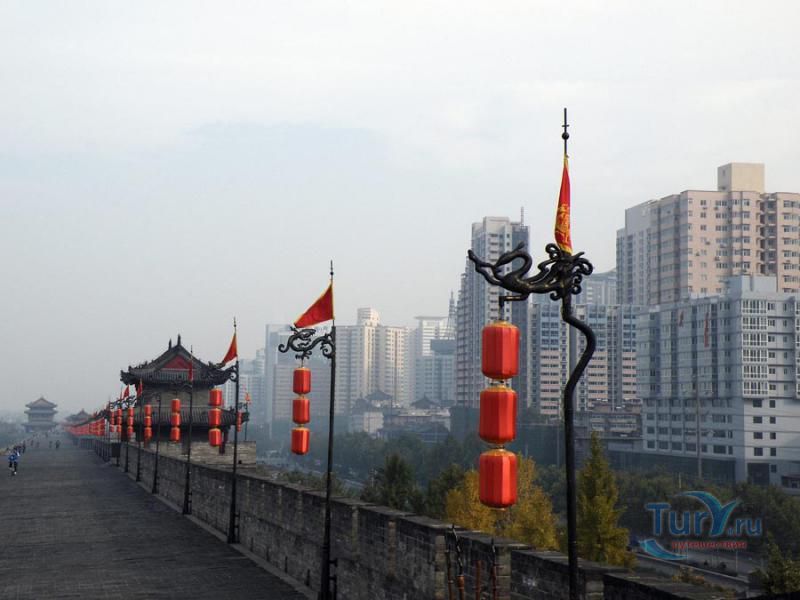 Одной из достопримечательностей города Сиань является стена эпохи Мин, с которой открывается живописная панорама старого города с видом на колокольню и Барабанную башню. Построенная в эпоху династии Танг, когда город был столицей, это - единственная уцелевшая городская стена, существующая в Китае. Аналогичное сооружение было в Пекине, однако оно было разрушено в середине 20 века при строительстве метрополитена. Прямоугольная стена 11.9 километров длиной, 12 метров высотой, 12-14 метров шириной на вершине, и 15-18 метров шириной в основе насчитывает 5 894 амбразуры только по внешней стороне. По углам стены 4 сторожевые башни. Каждая из 4 сторон имеет ворота. Над каждыми из ворот расположены: главная башня, стрелковая башня и парные наблюдательные башни.