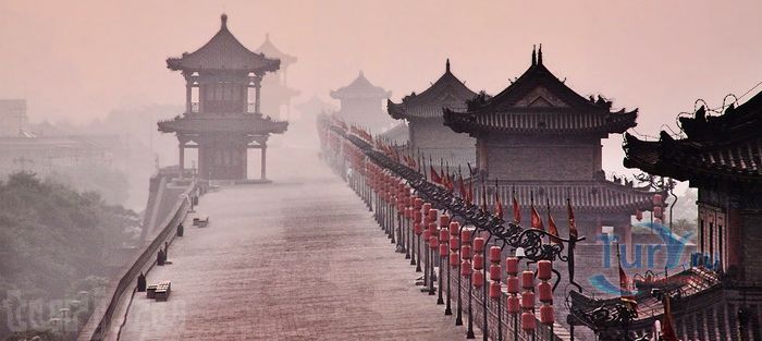 Первый император династии Мин - Чжу Юаньчжан назначил своего сына правителем Сианя. Именно тогда был распланирован новый город и построена новая двенадцатиметровая крепостная стена. С каждой ее стороны в город вели хорошо укрепленные ворота, построенные по всем правилам средневекового фортификационного искусства: подъемный мост, глубокий ров, каменный мешок с высокой балюстрадой. Открыв ворота, оборонявшиеся могли пропустить неприятеля внутрь, а потом засыпать градом стрел и камней. В каждой из 98 сторожевых башен, расположенных на расстоянии выстрела друг от друга, был расквартирован небольшой воинский гарнизон. Ворота в городских стенах были единственным способом покинуть город.