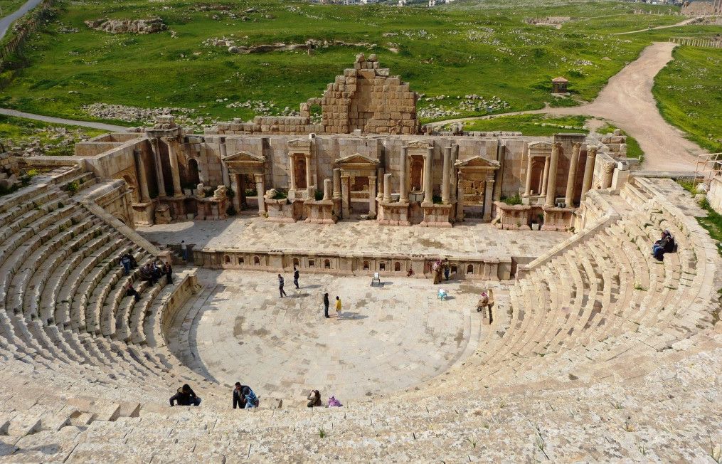 К северу от Аммана находится Джераш (древняя Гераса, II в. до н. э.), крупнейший город Декаполиса ("Десятиградья"), известный как "восточные Помпеи" из-за того, что разрушенный землетрясением город был погребен под селем. Оттого все древние сооружения дошли до наших дней в необыкновенно высокой степени сохранности. Наиболее интересны величественная трехсводчатая триумфальная арка возле Южных ворот, построенная в честь приезда в Джераш в 129 г. н. э. императора Адриана, обнесенная по периметру колоннадой из 56 колонн Овальная площадь или Форум, Северный и Южный театры, Нимфеум (Нимфей, II в. н. э.), церковь и площадь Пропилей, храм Артемиды (II в. н. э.), городские стены длиной более 3,5 км. (I в. н. э.) с многочисленными сторожевыми башнями византийского периода, Тетраконии, Южный мост, ипподром, Храм Зевса (II в. до н. э.), Стеклянный двор с мозаиками IV века, элегантные четырехсторонние арки тетрапилонов, несколько хорошо сохранившихся древних мощеных улиц (Южная, Кардо, Северный и Южный Декуманус, Лестничная), обрамленных колоннами, Бани Пласса, фонтаны, общественные здания, храмы и театры. Интересны церкви Св. Мариана (570 г. н. э.), Св. Феодора (494-496 гг. н. э.), Св. Козьмы и Дамиана, Св. Иоанна Крестителя, Св. Георгия (все - VI в. н. э.), Синагогальная (530-531 гг.), Епископа Генезия (611 г.), Св. Петра и Павла (V в.), Успения и др., так называемый Кафедральный собор на месте древнего храма Диониса, руины Мечети Атриума, прекрасный Археологический музей и множество других, не менее интересных мест.