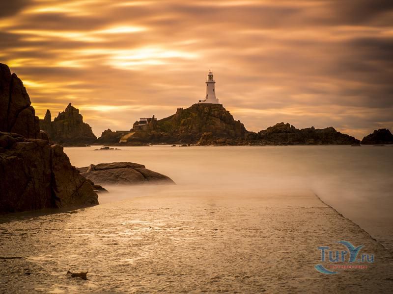 Маяк Корбьер расположен на юго-западе Джерси. Он является одним из самых популярных туристических мест острова. Здесь прекрасное место для наблюдения закатов и фотографирования. Название маяка дословно переводится как "место, где собираются вороны". Ворон, правда, здесь уже не осталось - их вытеснили чайки. Высота маяка составляет 19 метров, а его прожектор располагается на 36-ти. Он был открыт в 1874 году и стал первым бетонным маяком Британских островов. Эта местность всегда была трудна для навигации, здесь произошло немало крушений. Самое известное - крушение почтового судна "Экспресс" 20 сентября 1859 года.