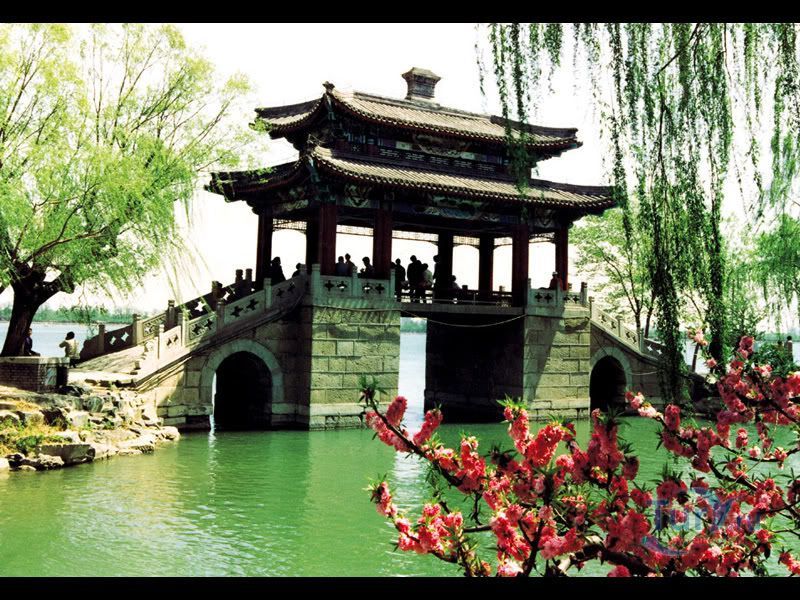 От каменного корабля дорога поворачивает направо и идет вдоль набережной канала, минуя несколько павильонов и изящный мостик, ведущий на остров, где когда-то жили императорские наложницы, и ведет дальше через парк к Западным дворцовым воротам - Сигумэнь, где туристы обычно и заканчивают свою прогулку по парку.
