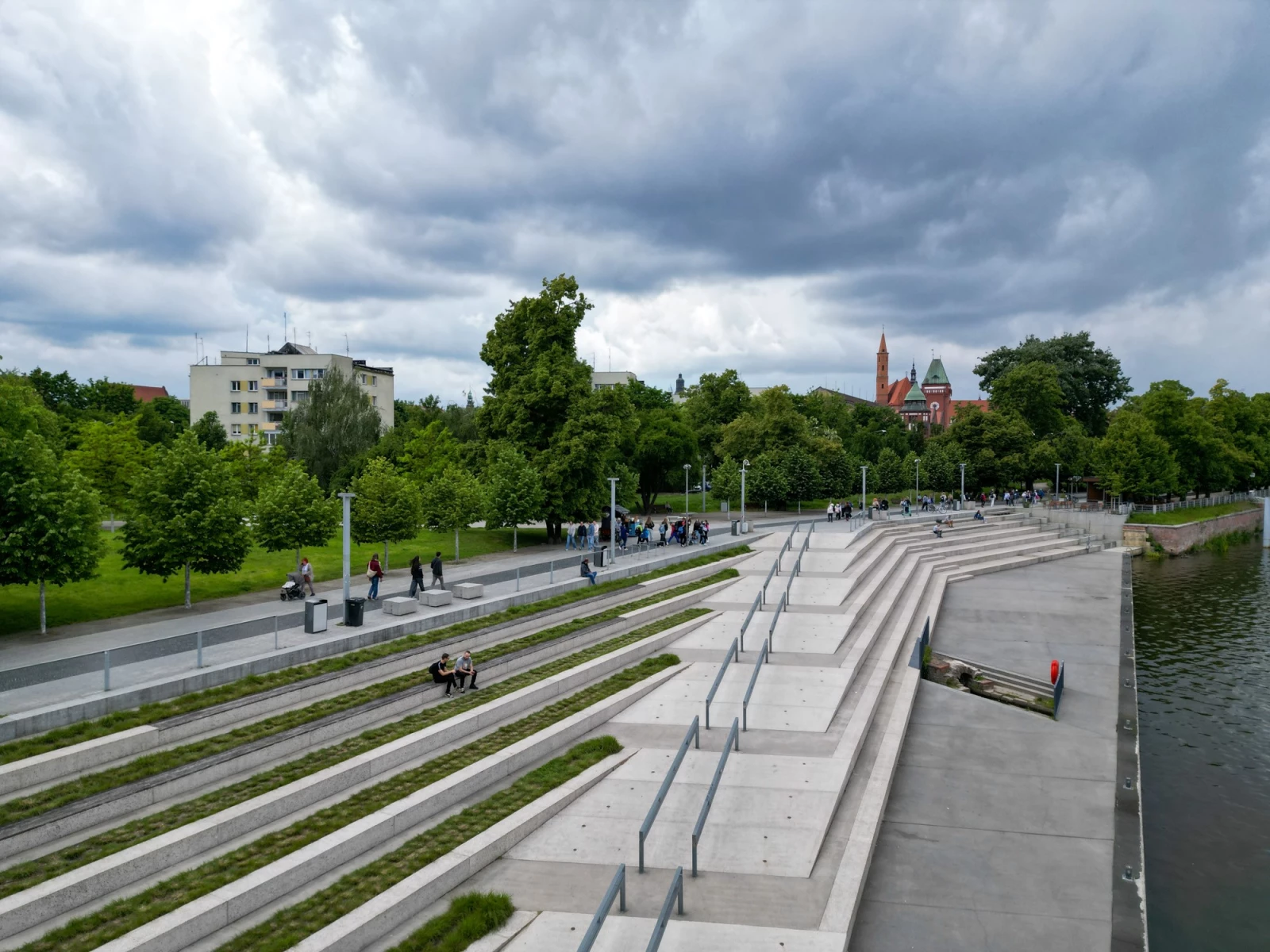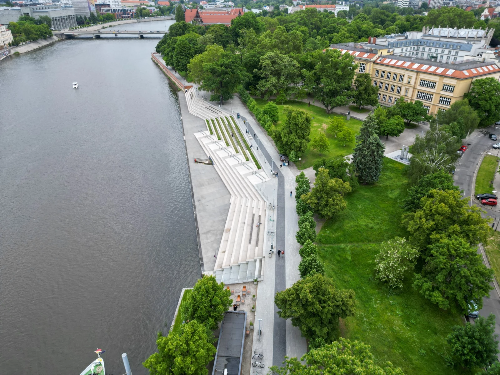 51.113, 17.0412Продолжаю обзор неочевидных, но прикольных мест Вроцлава :) Наша сегодняшняя локация - Бульвар Ксаверия Дуниковского, он же, по совместительству, набережная, пролегающая вдоль прекрасной Одры, прямо напротив знаменитого Тумского острова с Вроцлавским Собором и Архиепископским дворцом. С бульвара к реке спускается Амфитеатральная пристань, которая, как несложно догадаться, выполнена в виде крупн