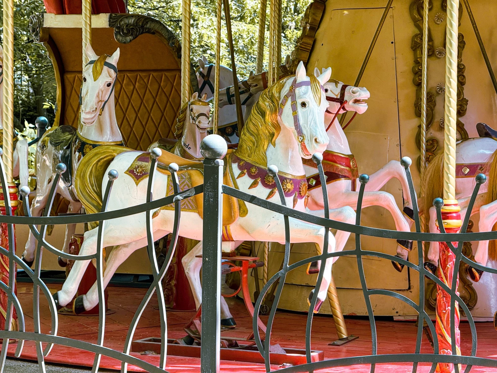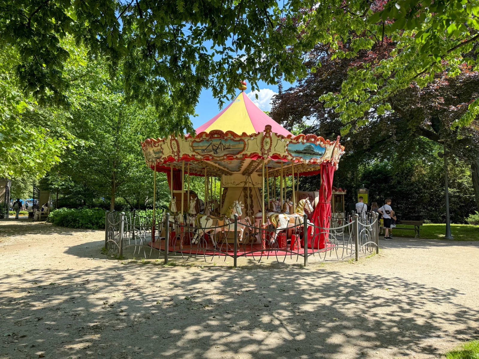 Установленная в северо-восточной части парка, рядом с детской площадкой, карусель открыта для посещения в тёплое время года — с апреля по октябрь. Она особенно популярна у семей с детьми, но её ностальгическая атмосфера привлекает и взрослых, желающих на мгновение вернуться в беззаботное прошлое. Под живописной крышей из резного дерева звучит классическая музыка, усиливающая эффект погружения в атмосферу старинного городского сада.