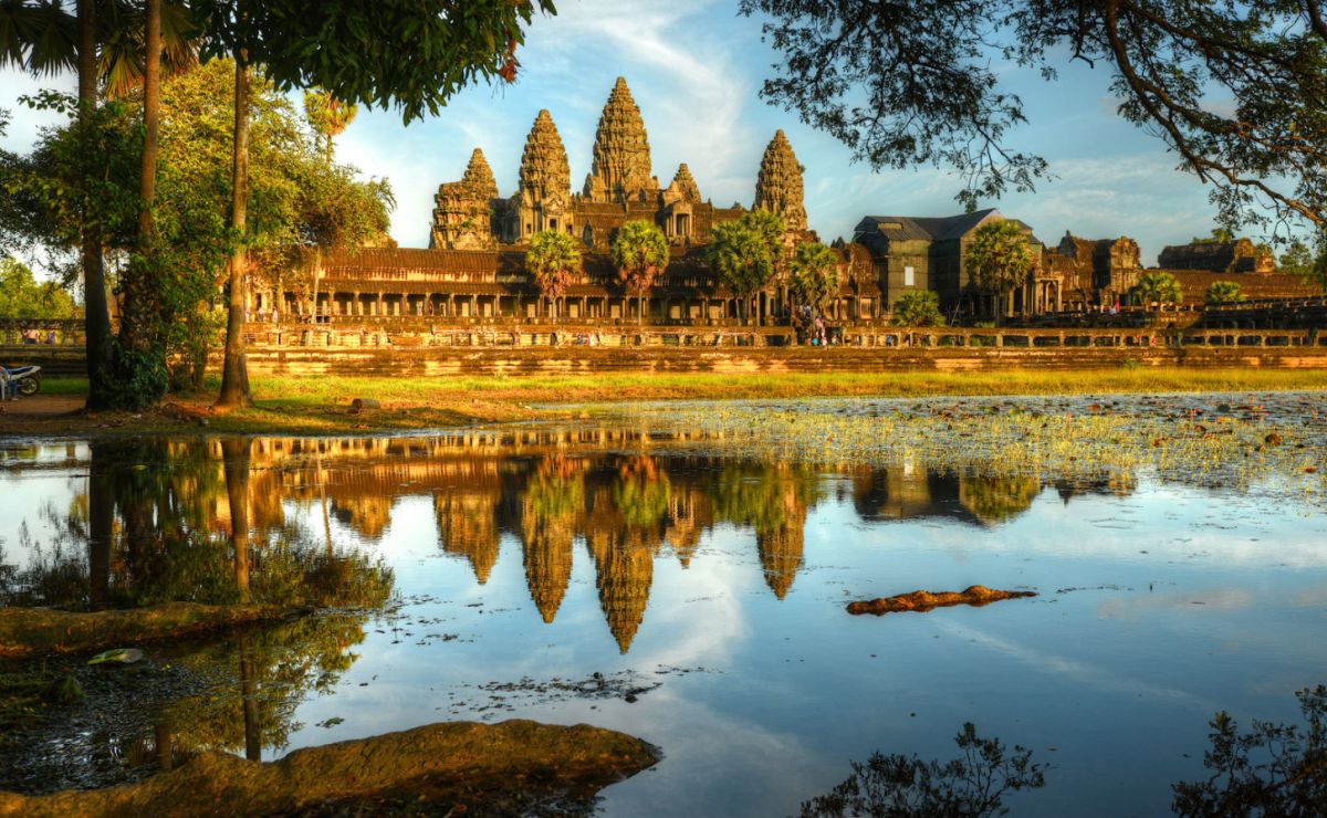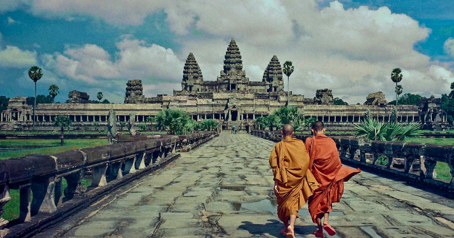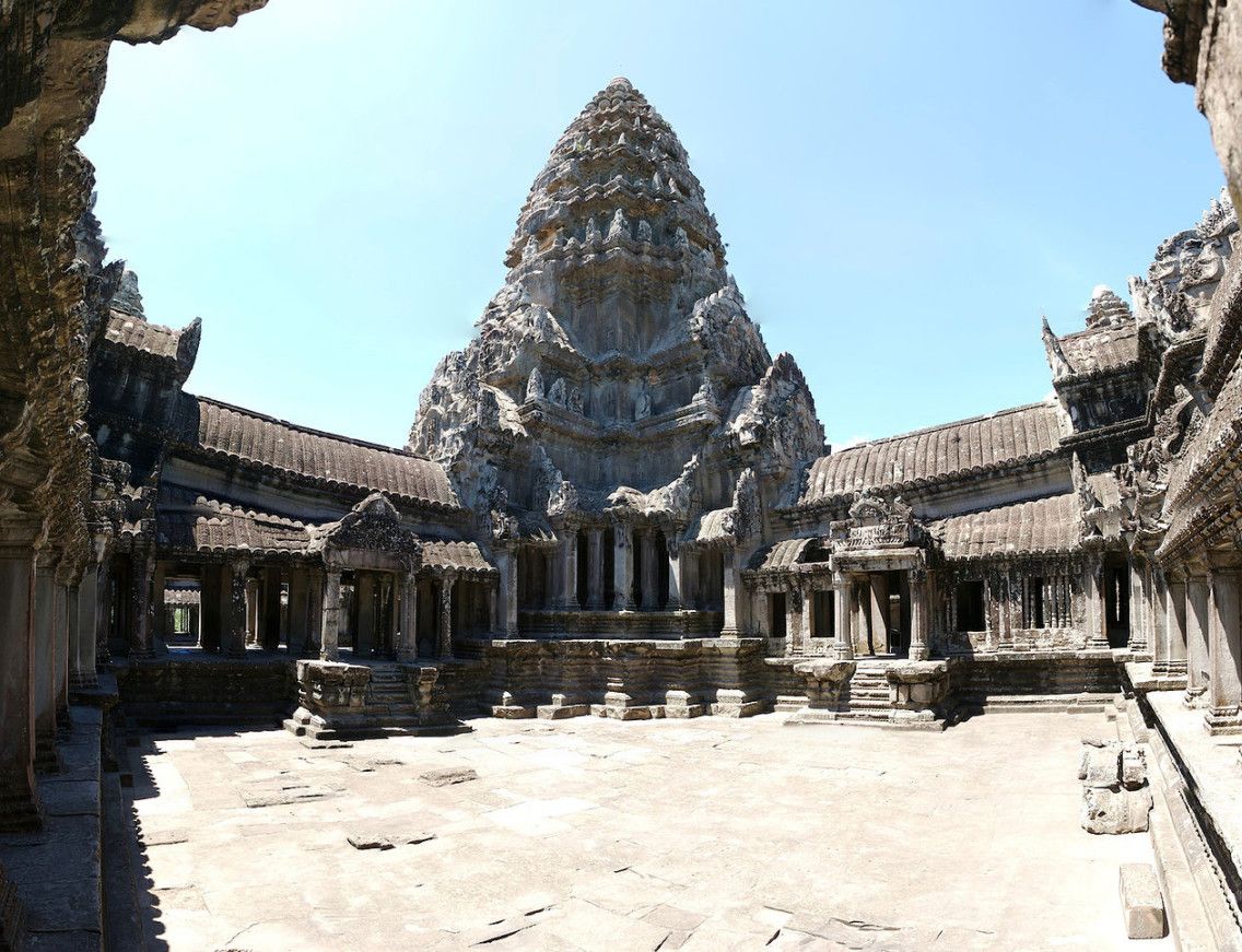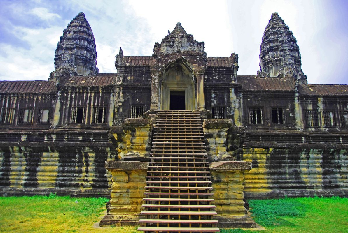 Храм, расположенный на южной границе древнего Ангкора, является, без сомнения, его главной достопримечательностью. Ангкор Ват (Angkor Wat) - самый красивый и величественный среди памятников старины Ангкорской группы. Зрелище и вправду потрясающее. Кажется, что башни совершенны по форме, настолько соблюдены все пропорции. И при этом, храм, если смотреть со стороны, как бы парит над землей. Ни одной простой стены - все украшено тончайшей ручной резьбой. Сначала храм, как и остальные дома кхмерских богов, был индуистским. Потом буддийским. Сейчас здесь можно встретить следы сразу двух вер. Построенный во времена правления короля Сурьявармана II (1112-1152) и посвященный индуистскому богу Вишну, Ангкор-Ват представляет собой, наверное, самое крупное религиозное сооружение в мире. Его общая площадь составляет около 2 кв.км. Кстати, "Ангкор-Ват" переводится как "город-храм". Ангкор-Ват сохранился намного лучше, чем многие другие сооружения Ангкора, что объясняется тем, что даже после запустения этих мест в Ангкор-Вате жили буддийские монахи. Живут они здесь и сейчас.