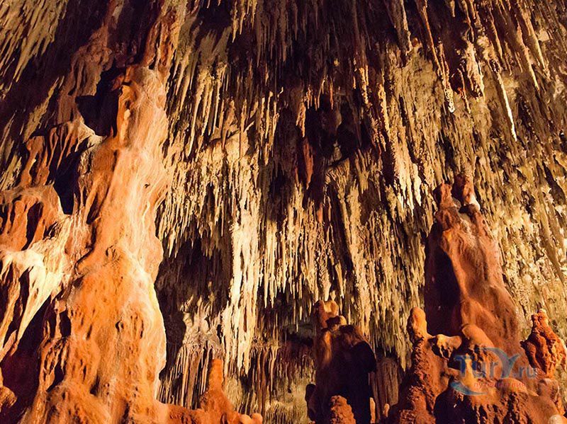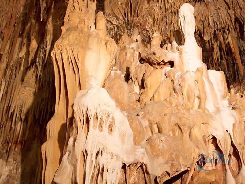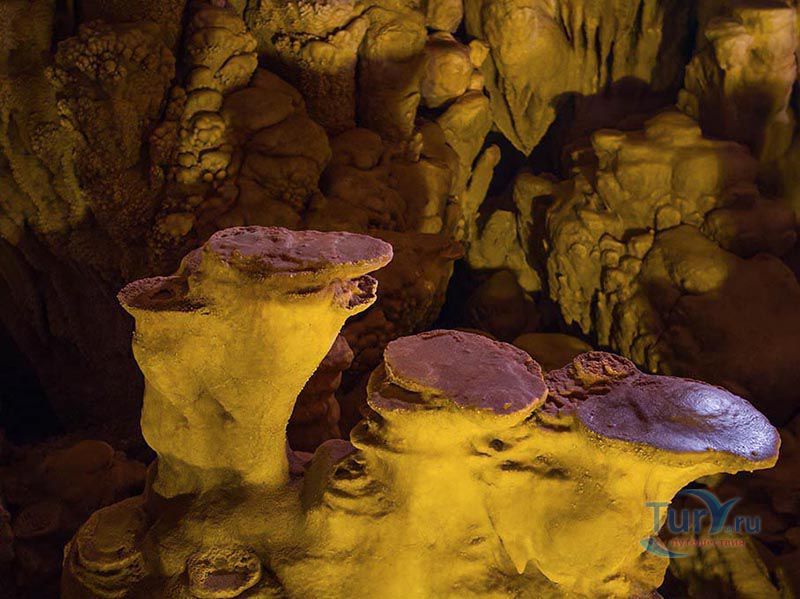Три миллиона лет ушло у природы на создание этих непревзойденных декоративных камней, словно вышедших из самых фантастических снов. Среди огромных красных и белых "водопадов" и гигантских колонн можно различить фигуры слонов, птиц, осьминогов и многочисленные грибы. Сталагмиты тут довольно редки и во время тура вы обязательно будете делать возле них остановку. Площадь пещеры составляет 1500 квадратных метров, а длина маршрута около 500 метров.
