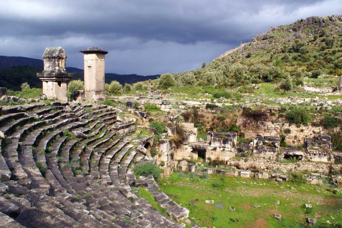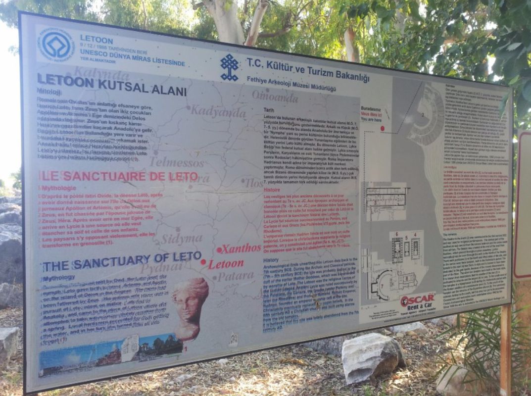 Летоон – это древнее святилище, расположенное в провинции Мугла, в 40 километрах от города Фетхие, на окраине деревни Кумлува. В 1962 – 1965 годах в ходе археологических раскопок, которые проводились под руководством французского археолога Анри Метцгера, были обнаружены фундаменты трех храмов, посвященных Лето, Аполлону и Артемиде. Существует легенда римского поэта Овидия, в которой говорится, что нимфа Лето была соблазнена Зевсом и родила ему близнецов Аполлона и Артемиду. Гера, супруга Зевса, охваченная ревностью, стала преследовать нимфу. Лето вместе с детьми бежала в Анатолию. У небольшого озера, где позже были построены храмы, Лето хотела утолить жажду, но люди не дали ей этого сделать. Тогда нимфа в порыве гнева превратила всех в лягушек. На месте святилища Летоон была найдена стела с надписями на трёх языках - греческом, арамейском и ликийском. Надписи на стеле датируются 358 годом до н.э.