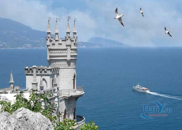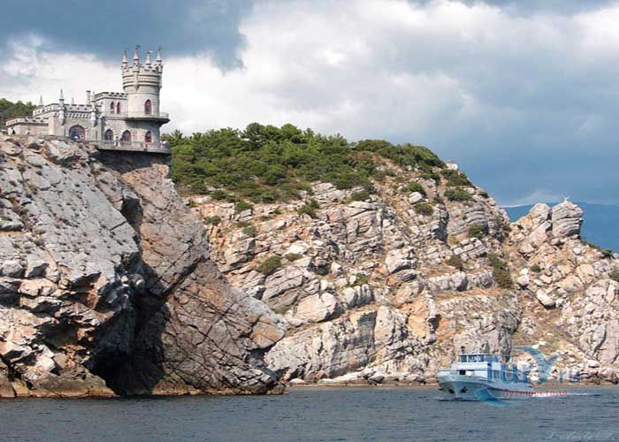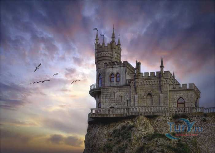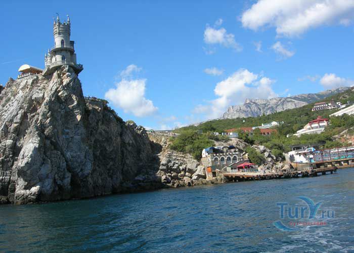 Ласточкино гнездо - памятник архитектуры и истории, расположенный на отвесной 40 - метровой Аврориной скале мыса Ай-Тодор в посёлке Гаспра. Архитектурный памятник 1912 года выполнен в стиле средневекового замка. Благодаря оригинальности решения архитектурной постройки Ласточкино гнездо являет самым известным сооружением и символом Крыма. Первое деревянное строение на этом месте было возведено для отставного русского генерала после русско-турецкой войны 1877-1878 годов. Вторым хозяином этой удивительной дачи стал придворный врач А. К.Тобин. После его смерти домиком некоторое время владела вдова, которая продала участок московской купчихе Рахманиной. Она снесла старое здание, и в скором времени появился деревянный замок, названный ею Ласточкино гнездо. Свой нынешний вид Ласточкино гнездо получило благодаря нефтяному промышленнику барону Штейнгелю, который любил отдыхать в Крыму. Штейнгель приобрёл на Аврориной скале дачный участок и решил построить там романтический замок, который напоминает средневековые сооружения на берегах Рейна. Проект нового дома был заказан инженеру и скульптору Леониду Шервуду. Рядом со зданием был разбит сад, который в результате землетрясения в 1927 году обрушился в море. В 1968 году была проведена робота по укреплению скалы и здания, которые обеспечивают безопасность строения. В июле 2011 года здание передано в муниципальную собственность.