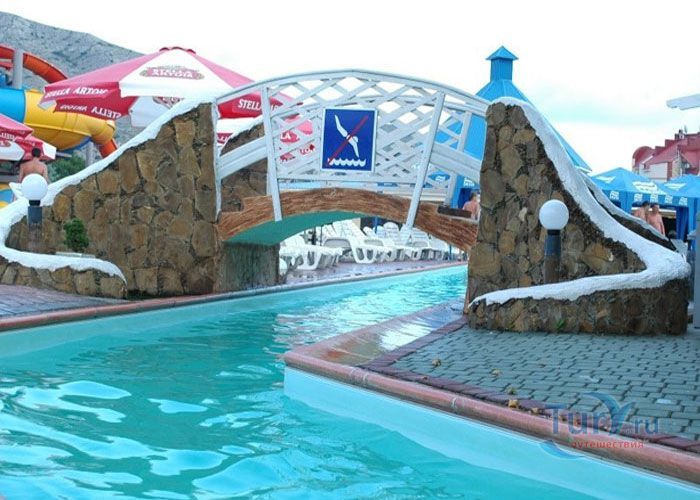 Судакский аквапарк открылся для приема посетителей в июне 2003 года. Парк водно-спортивных аттракционов с уникальным комплексом услуг, великолепно вписан в юго-восточную часть Судакской бухты, у подножия горы Алчак-кая, на самом берегу Черного моря. Посещение аквапарка принесет удовольствие не только детям всех возрастов, но и взрослых не оставит равнодушными и окунет с головой в мир детства, радости и веселья. Отдых в аквапарке - это экстрим и релаксация одновременно, великолепная возможность чудесно провести время всей семьей и превратить общение с близкими в увлекательное приключение. Здесь созданы все условия для комфортного отдыха и развлечений.