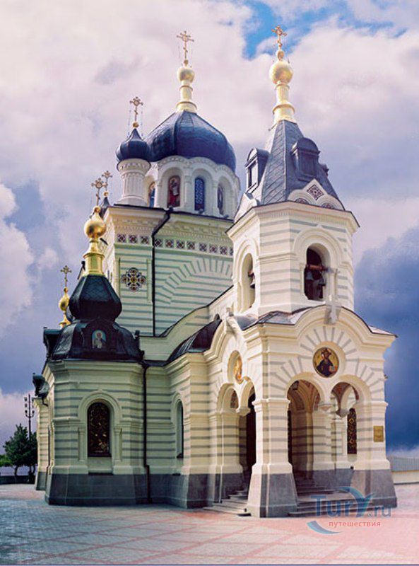 Церковь Воскресения Христова находится выше Фороса, на одинокой отвесной Красной скале. Возведена она в 1892 году бывшим владельцем форосского имения купцом Кузнецовым по проекту архитектора академика Н.М.Чагина в память о спасении императора Александра III и его семьи при крушении поезда. Мозаичные работы выполнены знаменитой мастерской итальянца Антонио Сальвиатти, а расписывали интерьер известные художники К.Е. Маковский, А.И. Корзухин. В 1921 году церковь была закрыта, кресты сброшены, роспись закрашена. В ней открыли ресторан, затем она была складом, а после пожара в 70-х вообще оказалась заброшена. Говорят, что ее собирались снести. Несколько лет назад в храме были проведены реставрационные работы, и теперь снова возобновилась служба.
