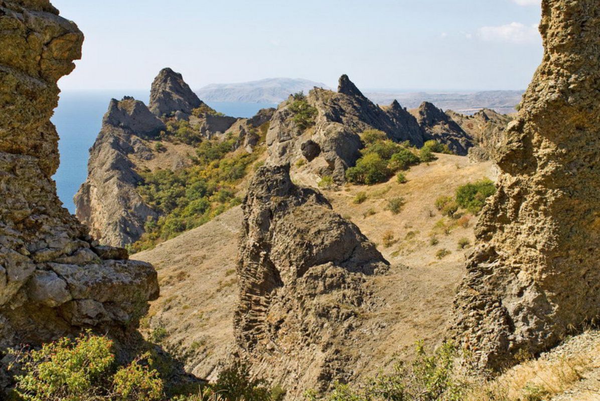 Сразу за знаменитым Коктебелем начинается заповедник Кара-Даг. Туда можно попасть в составе экскурсии и полюбоваться удивительными растениями, часть из которых редкие, а часть и вовсе эндемики. А уж сколь удивительные тамошние горы и скалы. Кара-Даг переводится как Черная гора, турецкие переселенцы в эпоху османского владычества в Крыму, видимо, хотели видеть вокруг себя знакомые названия. Поэтому невысокие местные горы (самые высокие пики достигают 577 метров) они назвали именем горы, расположенной на их родине, в турецком округе Караман. И вообще здесь сохранилось немало тюркских названий.