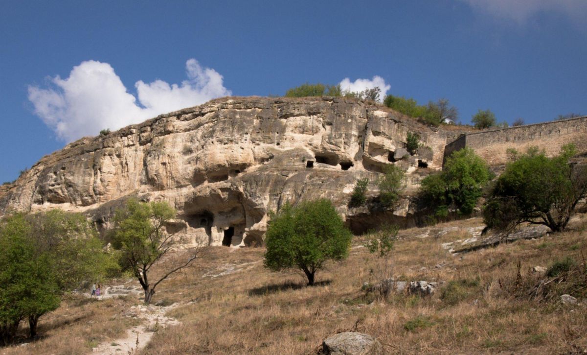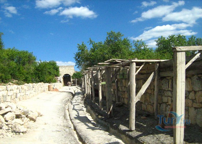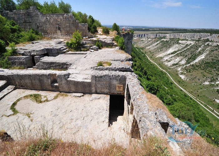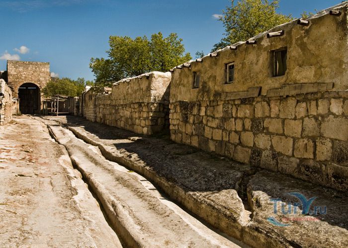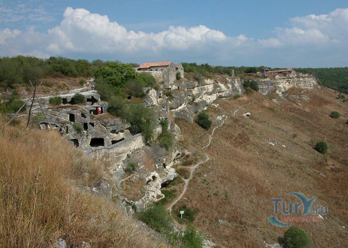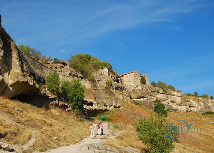 Средневековый город-крепость Чуфут-Кале расположен на плато горного отрога, господствующего над тремя долинами в Бахчисарае. Чуфут-Кале это один из пещерных городов Крыма, который хорошо сохранился до наших дней. Эта средневековая крепость на границе степей и предгорной части Крыма, являлась сильнейшей опорой крымских ханов в борьбе за независимость от Золотой Орды. Природа сделала неприступными обрывы и скалы этого города, а человек укрепил естественную защиту крепостными сооружениями. Одни исследователи считают, что это византийская крепость, основанная в VI веке, другие относят ее к Х-XI векам. В письменных источниках город упоминается в XIII веке под названием Кырк-Ор, что в переводе означает ”сорок укреплений”. Первый крымский хан Хаджи-Гирей в XV веке превратил его в свою укрепленную резиденцию. Потом старый город оставался своеобразной цитаделью Бахчисарая и местом заточения знатных пленников.