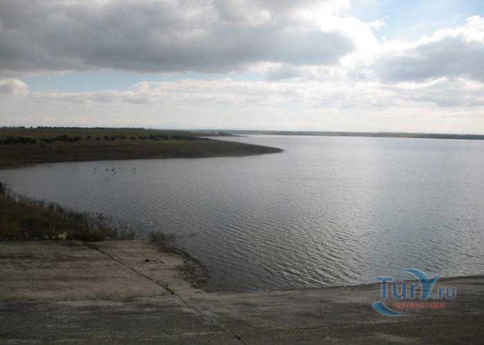 Межгорное водохранилище возле села Скворцово - самый крупный из наливных искусственных водоемов Крыма. Водохранилище находится недалеко от Симферополя, в Таксабинской балке, возле села Скворцово. Строительство Межгорного водохранилища продолжалось почти десять лет с 1981 по 1991 год. Гидроузел на водохранилище был введен в эксплуатацию в 1989 году. Максимальная ширина Межгорного водохранилища составляет 1,2 километра, длина около 4 км, максимальная глубина составляет 33 метра, средняя глубина водоема 12,5 метров, длина береговой линии около 13 км. Площадь водного зеркала Межгорного водохранилища составляет около 400 гектар, объем 50 млн. квадратных метров. На водохранилище была возведена земляная плотина, имеющая длину около 1,8 км и высоту около 38 метров. Водохранилище зарыблено.