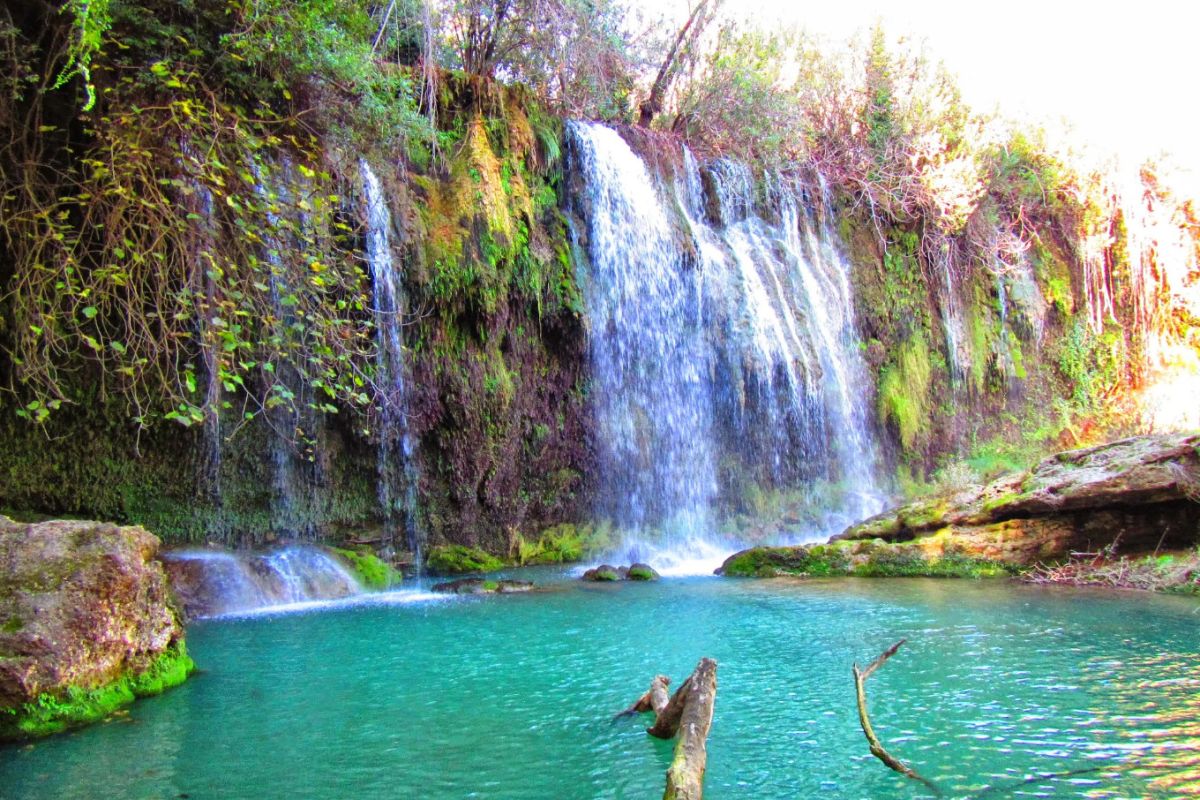 Водопад в природном парке Куршунлу – это только начало пути. Если вы действительно хотите оценить всю первозданность данного парка, отправляйтесь вниз по реке. Вдоль нее есть узкие тропинки для прогулок, которые совсем не выглядят протоптанными, скорее, дикими. В пятистах метрах от водопада вас ждет, цепляющее до глубины души место, в которое хочется возвращаться снова и снова. Это прекрасная голубая лагуна, небольшой водопад и милый домик на берегу, скрывающийся в листве.