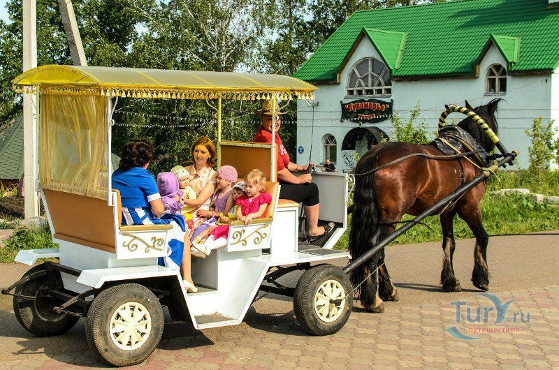 Во время отдыха на территории "Лукоморья" можно остановиться в одном из сорока домиков. На улице рядом с домиками при желании можно пожарить шашлыки. По всей территории парка разбросано множество домиков-таверн от местного ресторана, сочетающего европейскую и башкирскую кухни.