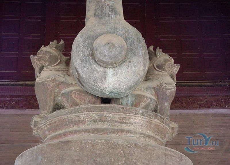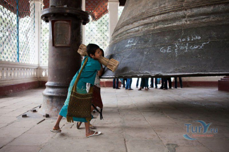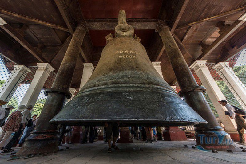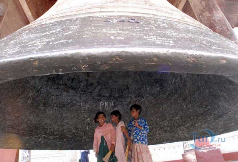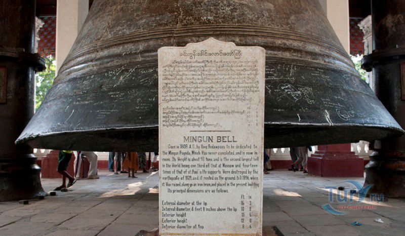 Колокол Мингун расположен в Мьянме, на левом берегу реки Иравади, в городе Мингун. До 2000 года он считался крупнейшим действующим колоколом в мире, пока не уступил пальму первенства китайскому Колоколу Счастья. Мингунский колокол был отлит в 1808-1810 годах по указу короля Бодопайя. Колокол планировали установить на строящейся в это же время ступе Мингун Пайя, которая, по задумке монарха, страдавшего гигантоманией, должна была стать самой большой ступой в мире. В состав сплава, из которого отливали колокол, входят медь, золото, серебро, железо и свинец. Строгое соблюдение пропорций и последовательности добавления в сплав химических элементов позволило литейщикам добиться не только великолепного звучания, но и прочности колокола. Вес колокола составляет 90 тонн, нижний диаметр - 5 метров, высота - 3,5 метра (вместе с петлёй для подвески - почти 7 метров), толщина стенок - 15-30 сантиметров. К месту установки Мингунский колокол доставили на двух соединённых вместе баржах. Чтобы баржи смогли подойти, были прорыты два канала. В сезон дождей уровень воды в каналах поднялся, что позволило закрепить колокол на поперечине из толстых брёвен, установленных на двух каменных столбах. Когда уровень воды в каналах спал, их снова засыпали. 23 марта 1839 года в Мьянме произошло сильное землетрясение, в результате которого столбы, державшие колокол, были разрушены. Колокол рухнул на землю, но прочный сплав выдержал, не дав ни одной трещины. Лишь в 1896 году Мингунский колокол был поднят и подвешен на стальную балку, установленную на железобетонных столбах. Над колоколом был возведен деревянный павильон с многоярусной резной крышей. Звон, издаваемый колоколом, имеет глубокий и мелодичный звук. Чтобы заставить колокол звучать, следует ударить по его стенкам большой тиковой колотушкой - в отличие от традиционных колоколов, Мингунский не имеет языка. Любой желающий может ударить в колокол - это считается признаком дружелюбия и уважения к местным традициям. Туристы, особенно дети, любят забираться внутрь колокола, вся его внутренняя поверхность исписана автографами на всех языках мира.