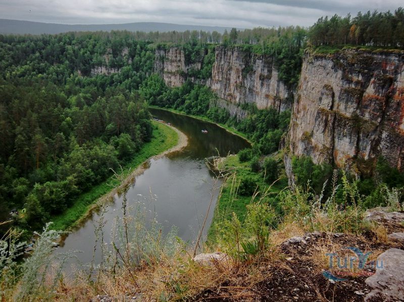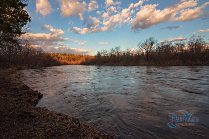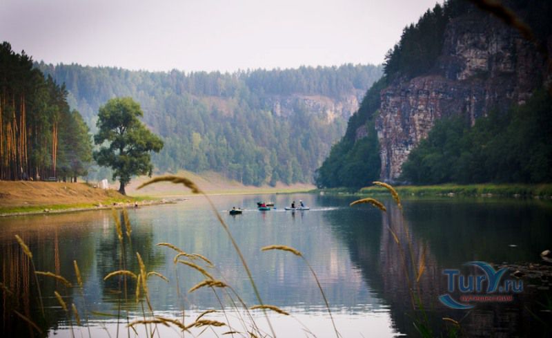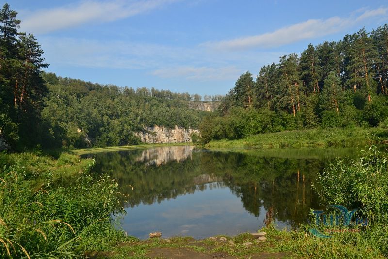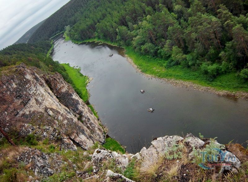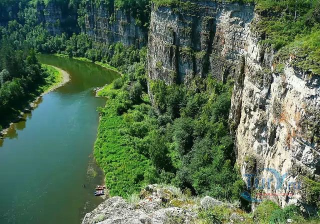 Река Ай - это левый приток реки Уфа. Истоком Ая является Большое Клюквенное болото в горной седловине между уральскими хребтами Уреньга, Ягодные горы и горный хребет Аваляк, на высоте 760 метров над уровнем моря. Длина реки Ай составляет 549 километров, из них 271 километр протекает по территории Челябинской области, 278 километров по территории Республики Башкортостан. В верхнем течении река протекает в направлении с юго-запада на северо-восток. В среднем и нижнем течении - с юго-востока на северо-запад. Река Ай условно разделяется на две части. От истока до села Лаклы она горная, далее равнинная. Основными ее притоками являются Куса, Большая Арша, Киги, Большой Ик, Ик, Большая Сатка, Лемазы, Мелекес. В 392 километрах от устья река Ай впадает в Уфу. Вода в реке постоянно мутная, возможно, это связано с породами по берегам реки. В горной части река Ай извилиста. Дно реки ровное. Сплав по реке Ай не требует специальной подготовки, здесь нет порогов и шиверов. Средняя глубина реки - 50 - 60 сантиметров. В большую воду она доступна для сплава в верхнем течении, но сплав по реке Ай лучше начинать от города Златоуст. Летом, при невысоком уровне воды в реке, сплав по Аю лучше всего начинать от устья реки Большая Сатка, берущей начало от знаменитого высокогорного озера Зюраткуль. Сплав на этом участке позволит насладиться живописными скалами, называемыми притесами, и пещерами. Ниже устья Большой Сатки начинаются знаменитые Айские притесы, тянущиеся до села Лаклы. Перед селом Лаклы находится знаменитый пещерный град Сикияз-Тамака. Самая интересная достопримечательность на реке Ай на отрезке пути от Кусы до Новой Пристани - скала Чертов Палец. Скала находится на правом берегу в 20 километрах ниже Кусы сразу после села Петропавловское. С вершины скалы открывается живописный вид на окружающие хребты. Ниже впадения в Ай речки Бейды находятся Черные скалы. Они тянутся вдоль правого берега реки на протяжении 2 километров и заканчиваются отвесным 30-метровым утесом. Интересным может получиться сплав в нижнем течении реки Ай, от села Большеустьикинское, если его совместить со сплавом по реке Уфа. В этих местах хорошая рыбалка.