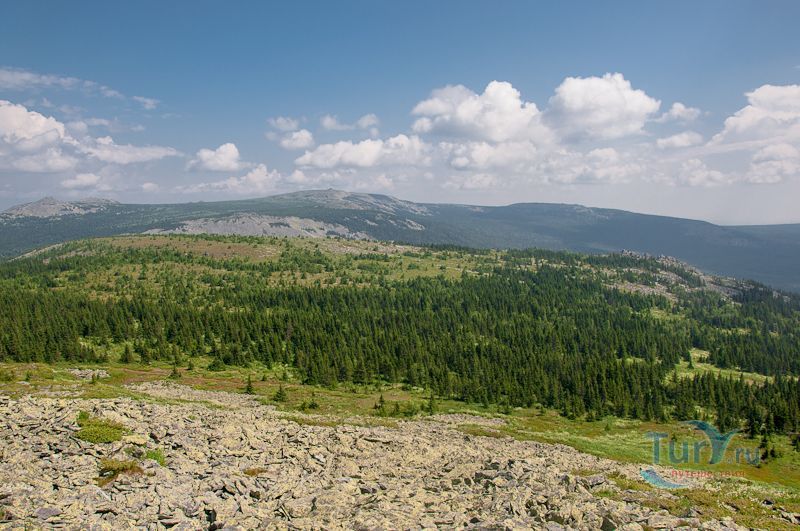 Гора Иремель - это вторая по величине вершина Южного Урала. Она расположена на северо-востоке Белорецкого района Республики Башкортостан. Гора представляет собой горный массив с двумя вершинами: Большой Иремель, высота которого составляет 1582 метра над уровнем моря, и Малый Иремель высотой в 1449 метров над уровнем моря. Вершина, в виде плато Большого Иремеля, называется - Кабан, что в переводе с башкирского языка означает "стог". Два отрога, отходящие от Большого Иремеля, заканчиваются скалами Жеребчик, высота которого 1250 метров, и Синяк - высотой 940 метров. Расстояние между Большим и Малым Иремелем составляет примерно 1 километр. Малый Иремель завершают 5 вершин-сопок, имеющих каменистую поверхность и скалистые останцы.
