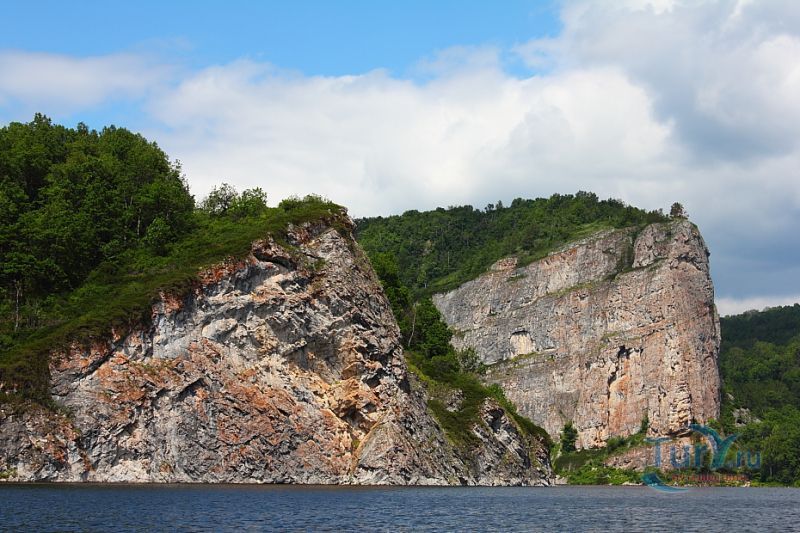 Юмагузинское водохранилище находится на территории Национального парка Башкирия, в верховьях реки Белая. Водохранилище протяженностью 57 километров растянулось в пределах Кугарчинского района республики. История Юмагузинского водохранилища началась в 1998 году со строительства гидроэлектростанции в узком горном каньоне реки Белая. Она стала одним из самых спорных гидротехнических сооружений, построенных в республике. Строительство сопровождалось протестами местных жителей и экологов, коррупционными скандалами. В 2003 году началось заполнение водохранилища, в результате чего многие природные достопримечательности оказались затопленными, например, пещера-пропасть Сумган-Кутук. Под затопление попала часть когда-то общесоюзного сплавного маршрута по реке Белой. В 2007 году строительство инженерного сооружения было полностью закончено. Плотина Юмагузинской ГЭС имеет длину 605 метров и высоту 65 метров. Средняя глубина водохранилища - 26 метров, а максимальная - 63 метра. Средняя ширина составляет 300 - 400 метров. К счастью, несмотря на все разногласия, водохранилище остается одним из самых красивых мест Башкортостана. Его узкая горная долина практически на всем протяжении с обеих сторон окружена высокими и очень красивыми скалами причудливой формы с не менее интересными названиями: "Митрошкин камень", "Азан-Таш", "Сундук-Таш", "Крейсер" и другие. Самая необычная скала - "Чертов Палец". Она представляет собой вертикальный каменный столбец, отделенный от скалы, по своим очертаниям напоминающий палец. В скале "Крейсер" находится пещера "Театральная". Во время плавания также можно увидеть скалу "Вождей" или "Классиков". В 1979 - 80 годах местные художники Татьяна и Булат Каримовы нарисовали на ней Ленина, Маркса и Энгельса. К числу наиболее интересных мест водохранилища также можно отнести и остров Сакасска. Это гора, которая в результате наполнения водохранилища, была окружена водой и превратилась в остров. Отсюда можно попасть в знаменитый Сумган-Кутукский карстовый район, богатый многочисленными пещерами.