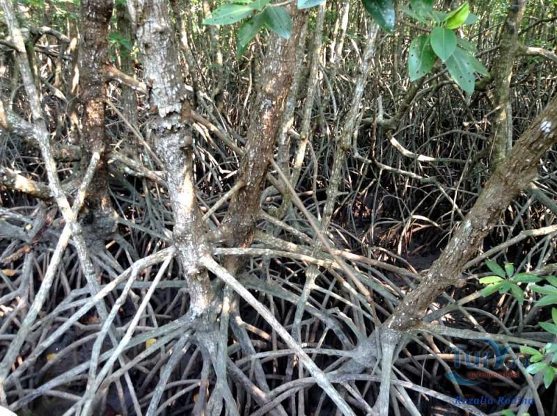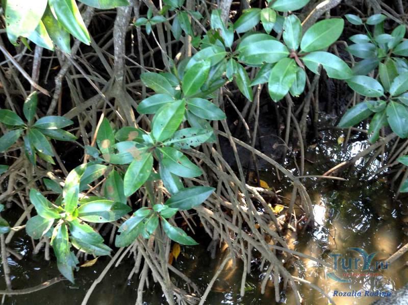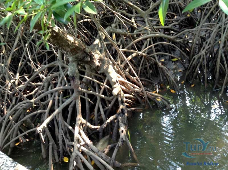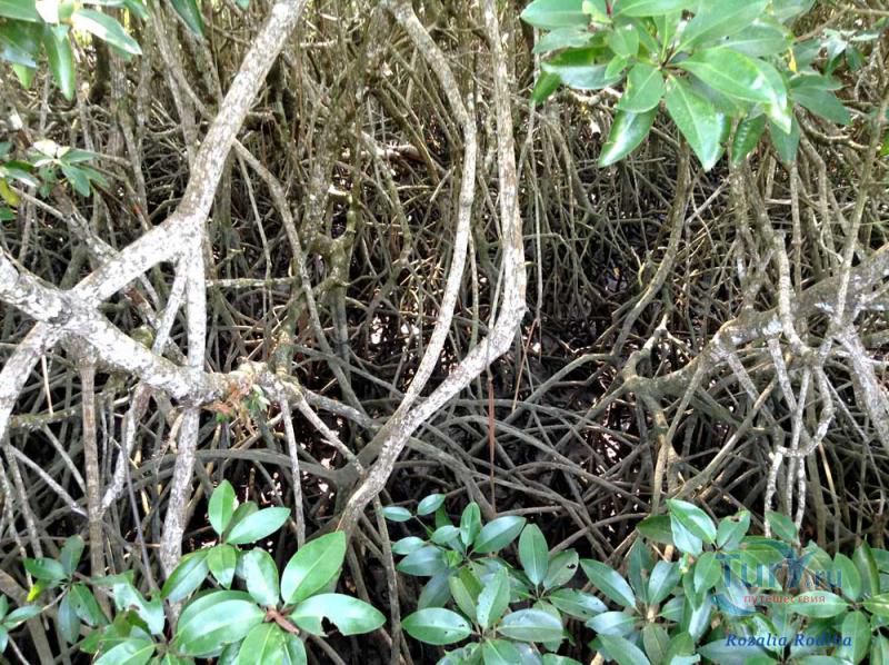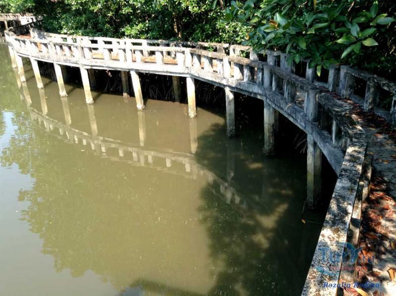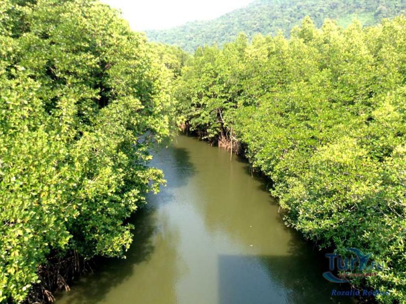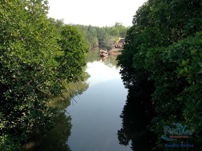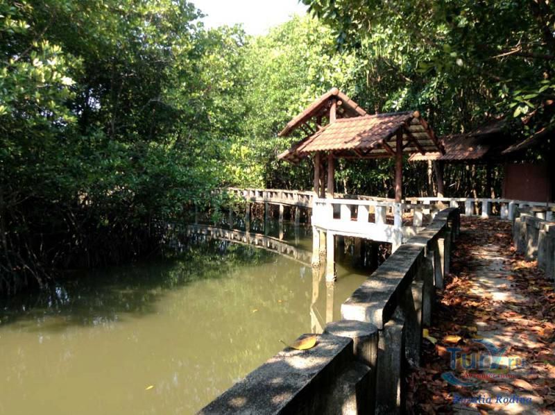 Практически в самом центре деревни Бан-Са-Лак-Кхок (Ban Sa Lak Khok), которая расположена в юго-восточной части острова Ко-Чанг, в провинции Трат Восточного Тайланда, находится одно интересное для туристов место - это длинная дорога по Мангровым зарослям. Сама дорога представляет собой шедевр творения рук человеческих - эта железобетонная конструкция на высоких сваях со множеством поворотов, изгибов, ступенек, мостиков и крытых мест для отдыха длиной в несколько километров. Даже в самое знойное время идти по дороге вполне комфортно - густые сочные кроны мангровых деревьев спасают от палящих лучей солнца, а легкий ветерок освежает идущих. Здесь путешественник попадает в другой, особый мир дикой природы - блестящие крупные листья мангровых деревьев ярко-зеленого цвета сплошным ковром покрывают огромную площадь зарослей, лишь кое-где оставляя путь каналам - водным артериям, питающим мангры. Многочисленные, переплетенные между собой немыслимым образом, корни деревьев поддерживают мощный ствол и увесистую крону, приподнимая их высоко над болотистой жижей. Глядя на эту картину, понимаешь, что если бы не эта дорога на сваях, то вряд ли бы кто-то решился по своей воле вторгнуться во владения мангровых зарослей и пройтись своими ногами по их миру. На это можно только смотреть - смотреть и удивляться разнообразию жизни на нашей планете Земля. Где-то посреди пути по бетонному лабиринту дороги стоит высокая смотровая вышка, взобравшись на которую, можно обозревать километры ярко-зеленого покрывала мангровых зарослей, раскинувшегося на все четыре стороны, и ленты каналов, добавляющие к зеленому свои шоколадные оттенки.