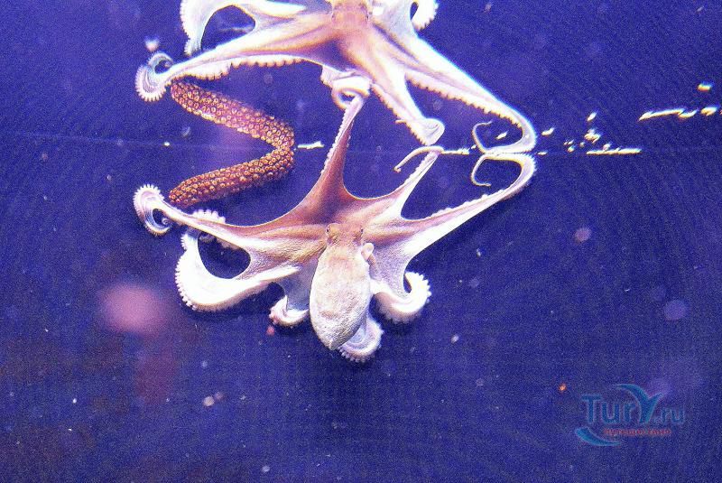 В аквариуме особенно впечатляют акулы. В Средиземном море водится 39 видов этих древних созданий, появившихся на земле 450 млн. лет назад - тигровая, лимонная, серая (два метра), бычья (три метра) и акула-бульдог, мертвая хватка которой заменяет недостающие метры.