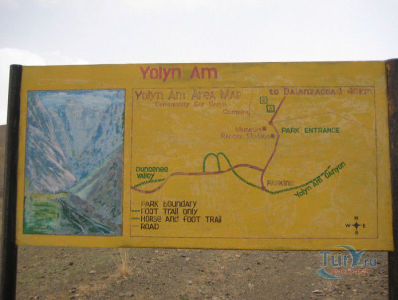 Ущелье Елын-Ам расположено на юге Монголии, в провинции Умнеговь, на территории Национального парка Гоби-Гурван-Сайхан, в 60 километрах к юго-западу от города Даланзадгад. Ущелье находится на высоте 2500 метров над уровнем моря, в горах Дзун-Сайханы-Нуру, образующих восточную оконечность горного хребта Гурвансайхан. В 1965 году, ещё до создания Национального парка Гоби-Гурван-Сайхан, территория, на которой расположено ущелье Елын-Ам, была объявлена заповедной. Елын-Ам представляет собой огромную расщелину с отвесными стенами-скалами высотой до двухсот метров, которая образовалась в результате сильного землетрясения, расколовшего гору на две части. Ущелье очень глубокое и узкое, в некоторых местах перегородить его могут два стоящих плечом к плечу человека. По дну ущелья течёт горная река, которая, низвергаясь со скалы, образует живописный водопад. После сильных дождей река становится полноводной и образует четыре небольших водопада, потоки которых обрушиваются на дно ущелья с двухсотметровой высоты. Из-за большой глубины ущелья солнечные лучи не проникают в него, и большую часть года (до недавнего времени - круглый год) на дне урочища лежит лёд. Зимой река полностью замерзает, толщина ледового поля может достигать нескольких метров, а длина - нескольких километров. На скалах ущелья гнездятся грифы-бородачи, давшие название название урочищу - Елын-Ам в переводе с монгольского означает Долина Грифов или Долина Орлов. Размах крыльев этой птицы достигает трёх метров, гнёзда бородачи вьют на скалах, питаются падалью. В ущелье обитают сибирский горный козёл, архар, пищухи, встречается снежный барс. Елын-Ам - одна из самых популярных природных и туристических достопримечательностей Монголии, ущелье посещают тысячи туристов со всего мира. Рядом с ним есть небольшой музей, расположены ряды сувенирных лавок, оборудована автостоянка.