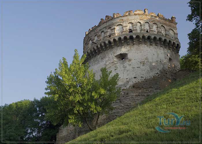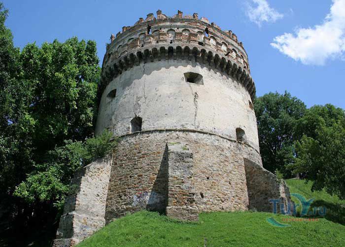 Острожский замок в городе Острог был возведен на вершине холма над рекою Вилия в 1241 году князем Даниилом Острожским. Замок Острожских с ХIV по ХVI век был родовым гнездом самых богатых магнатов Речи Посполитой того времени. За всю историю своего существования замок пережил несколько перестроек и модернизаций. В настоящий момент в архитектурный ансамбль замка составляют Башня Мурованная, воздвигнутая в ХIV веке, Круглая башня, которую построили в ХVI веке, Богоявленский собор ХV – ХVI веков постройки, надвратная колокольня, построенная в 1905 году, и фрагменты стен. Богоявленская церковь входила в общую систему замковых укреплений, так как северная стена была связана с крепостными стенами, имела бойницы и дозорную площадку. В юго-восточной стороне замка расположена Башня Мурованная, в которой находится Краеведческий музей. На юго-западе замка находится Круглая башня, которая построена из кирпича и камня и представляет собой трехъярусное сооружение, с трех сторон укрепленное контрфорсами. В плане строение имеет круглую форму, имеет трапецеидальный вырез в сторону дворца. В конце ХVI столетия верхним ярусам башен придали облик в стиле ренессанса.
