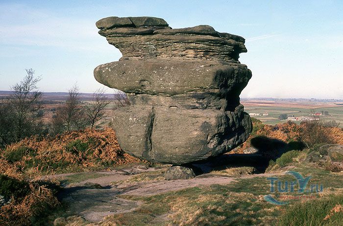 Скала Идола или Стол Друида – 200-тонный монолит, балансирующий на маленькой каменной пирамидке, расположен в Бримхаме, Северный Йоркшир, Англия. Этот шедевр природы остаётся загадкой для людей, бросая вызов законам физики. Туристы, посещающие Бримхаму могут лицезреть множество каменных изваяний, расположенных в округе, но самой большой популярностью пользуется именно Стол Друида. В Викторианскую эпоху считалось, что это место создано друидами и наделено мистическим смыслом. В 20 веке стало известно, что эти скалы образовались в результате 18000 летней эрозии. Экскурсии к скале приобретают большую популярность. Желающих увидеть и разгадать секрет создания удивительного монолита становиться всё больше и больше.