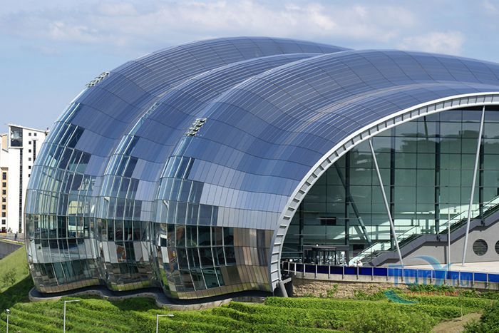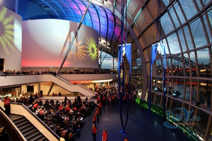 Сейдж Гейтсхед – уникальный центр музыкального образования, который расположен в Гейтсхеде, Англия. Он был построен 2003 году. Здание имеет очень причудливую форму, его сравнивают с большой гусеницей, или с облаком. В его строительстве участвовало очень много организаций, но основным проектантом считается Норман Фостер. Купол здания состоит из 3500 квадратных метров изогнутого стекла и 3043 панелей из нержавеющей стали. В Сейдже есть три основных зала – большой зал вместимостью 1700 мест, средний зал на 400 мест и холл, а вся остальная инфраструктура – бары, интернет кафе, библиотека и фонотека располагаются вокруг каждого зала с учётом акустических особенностей. Два концертных зала и холл – это три отдельных здания пирамидальной формы, которые изолированы в верхней части друг от друга, и соединены у своего основания. Это сделано с целью создания совершенной акустической структуры, которая отвечает требованиям лучших концертных залов мира. Вначале, жители Гейтсхеда не особо жаловали это строение из-за своей причудливой формы, но сейчас считают его одним из основных достопримечательностей своего города.