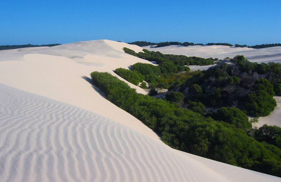 Остров Фрейзер - ёще один уникальный уголок Австралии, расположен в Коралловом море, относится к штату Квинсленд. Это самый большой песчаный остров в мире. Весь он состоит из песчаных разноцветных дюн, которые образовались около 400 тысяч лет назад и возвышаются до 240 метров. Остров славится пресноводными озёрами (Висячие озёра), их в этой местности насчитывается более сорока. Самое крупное из них Lake Boemingen площадью 200 га. В западной болотистой части острова произрастают мангровые леса. Восточное побережье украшает пляж из белоснежного песка длиной около 100 км. В северной части сохранились влажные экваториальные леса, практически в нетронутом виде. Животный мир острова тоже очень интересен. В мелких озёрах водятся пресноводные черепахи, на суше встречается дикая собака Динго. В 1992 остров Фрейзер включён в список Всемирного наследия ЮНЕСКО как неповторимый природный памятник. Туристы на острове могут отправиться в путешествие по тропическим лесам растущим из песка, посетить многочисленные и очень тёплые и красивые висячие озёра, либо исследовать обломки корабля "Махино", или просто наслаждаться мистикой разноцветного песка играющего на солнце.